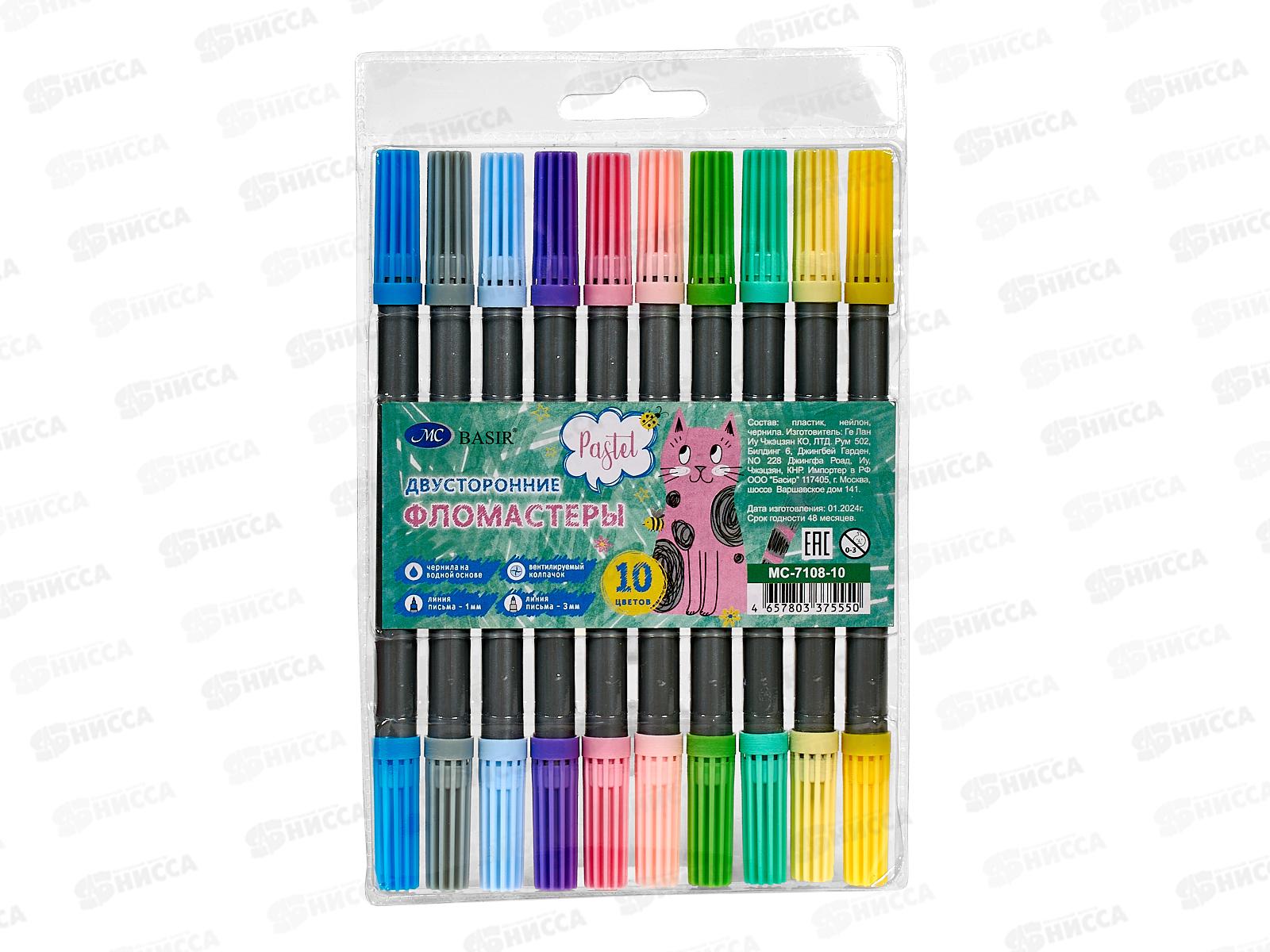 Фломастеры 10 цветов BASIR "Котики" двусторонние.1/3мм MC-7108-10 *12/144