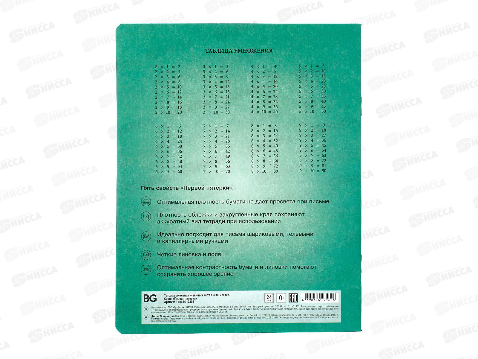 Тетрадь 24листа клетка BG Первая пятерка.,12305*10/120