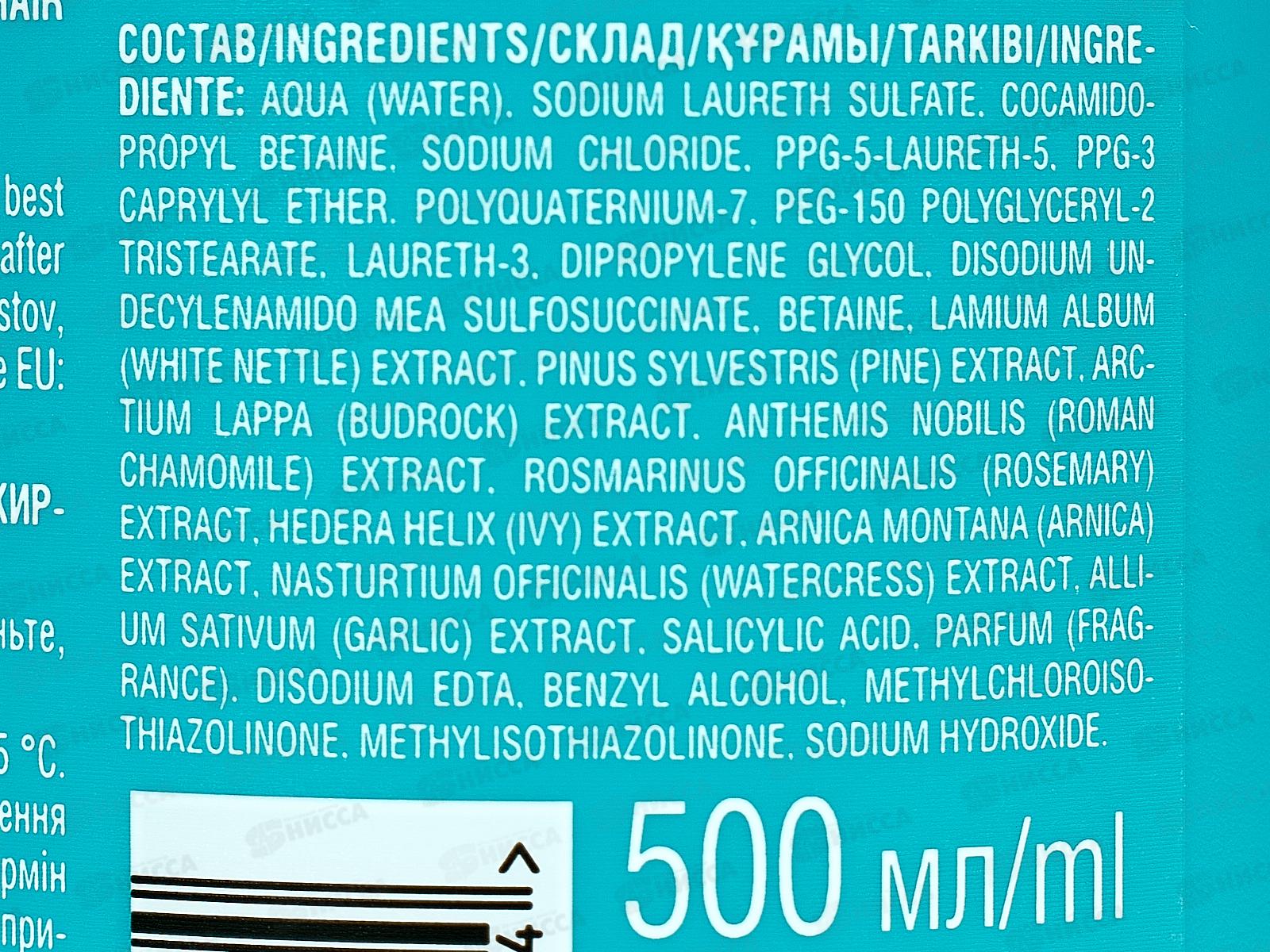 Мицеллярный шампунь разработан специально для склонных к жирности волос. Мицеллы, входящие в состав шампуня, как по волшебству притягивают к себе загрязнения, прекрасно очищая волосы и кожу головы. Состав: вода, лауретсульфат натрия, кокамидопропилбетаин, хлорид натрия, ППГ-3 каприлиловый эфир, поликватерниум-7, ППГ-5-лаурет-5, ПЭГ-150 полиглцерил-2 тристеарат, лаурет-3, дипропиленгликоль, ундециленамидо МЭА сульфосукцинат динатрия, бетаин, парфюмерная композиция, экстракт белой крапивы, сосны, лопуха, ромашки, розмарина, плюща, арники, водяного креса, чеснока, ЭДТА динатрия, салициловая кислота, бензиловый спирт, метилхлоризотиазолинон, метилизотиазолинон, гидроксид натрия.