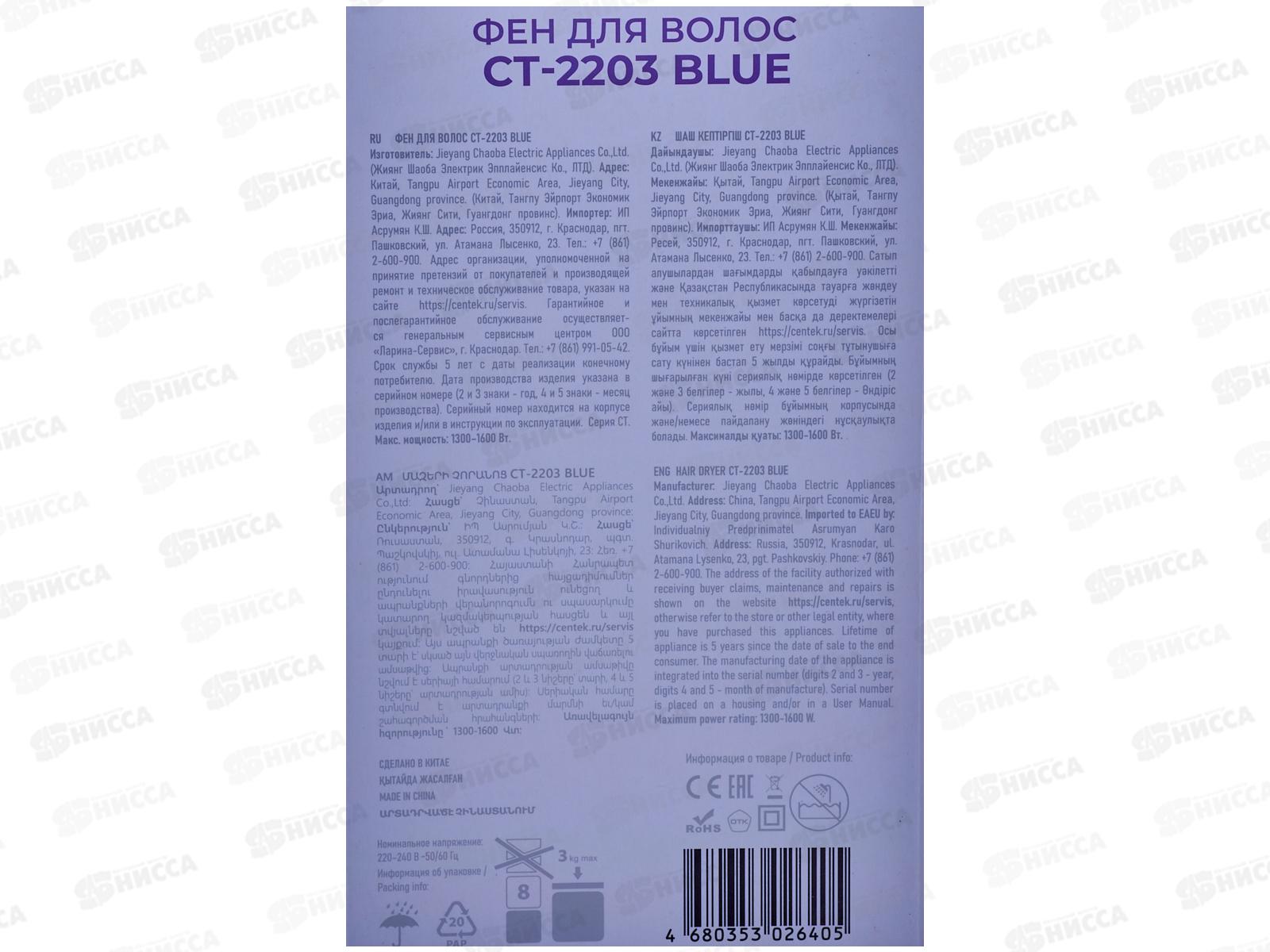 Фен электрический CT-2203 Синий 1600Вт 3 скорости