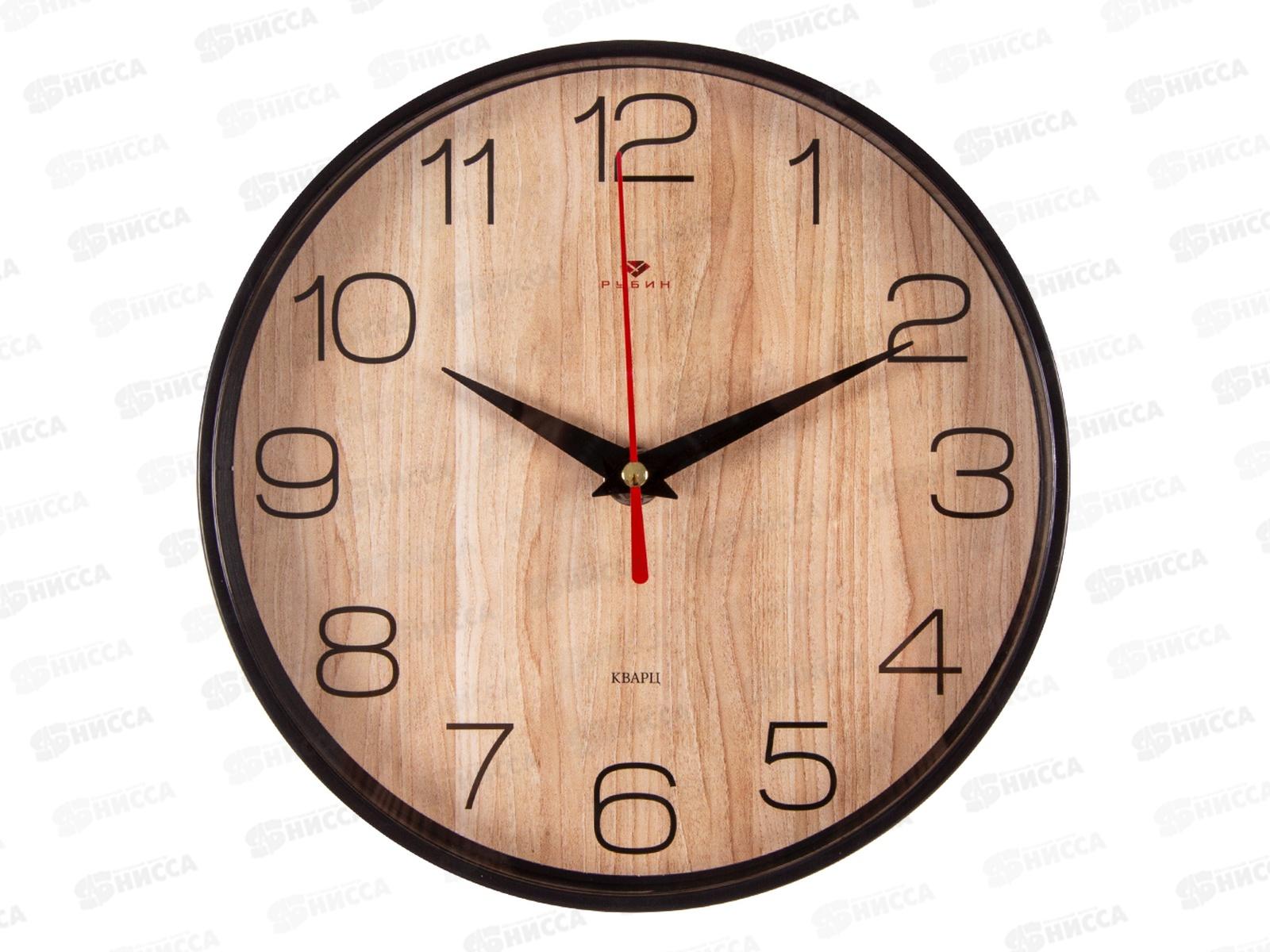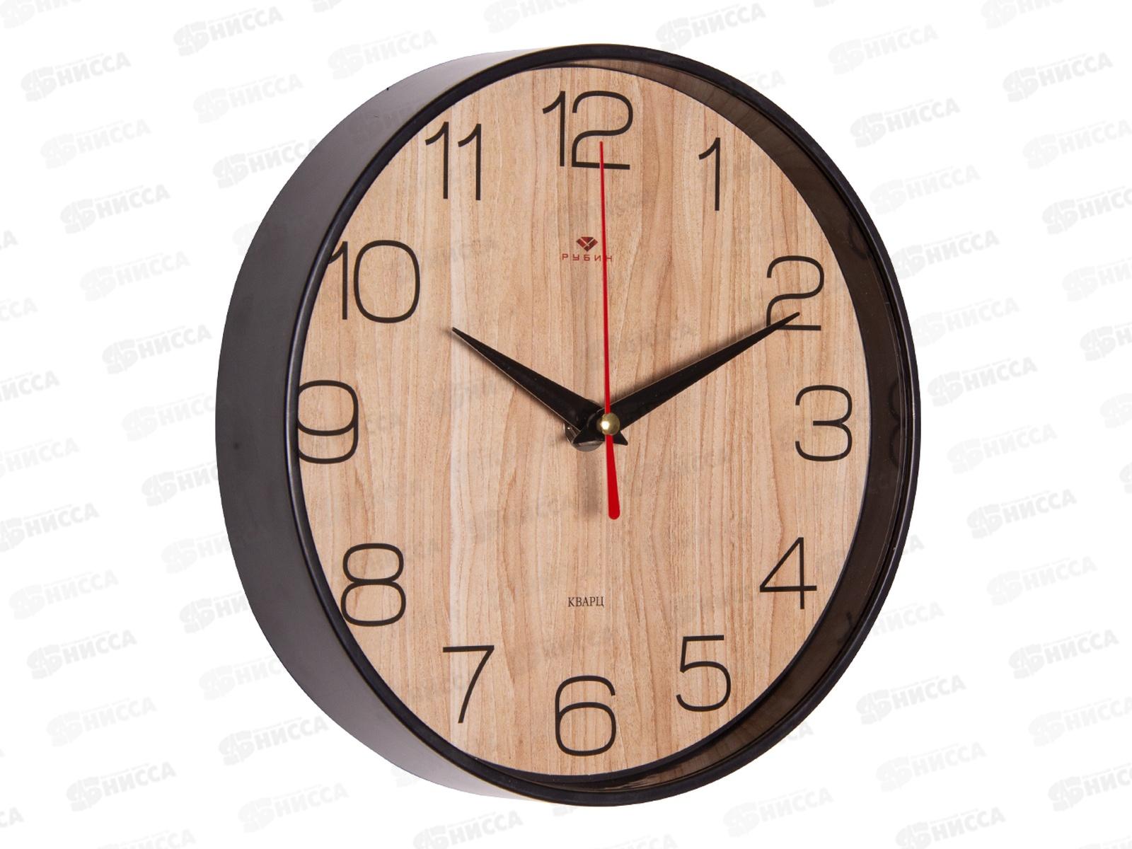 Часы настенные "21 Век" 2019-002 Текстура дерева d-19.5 корпус черный