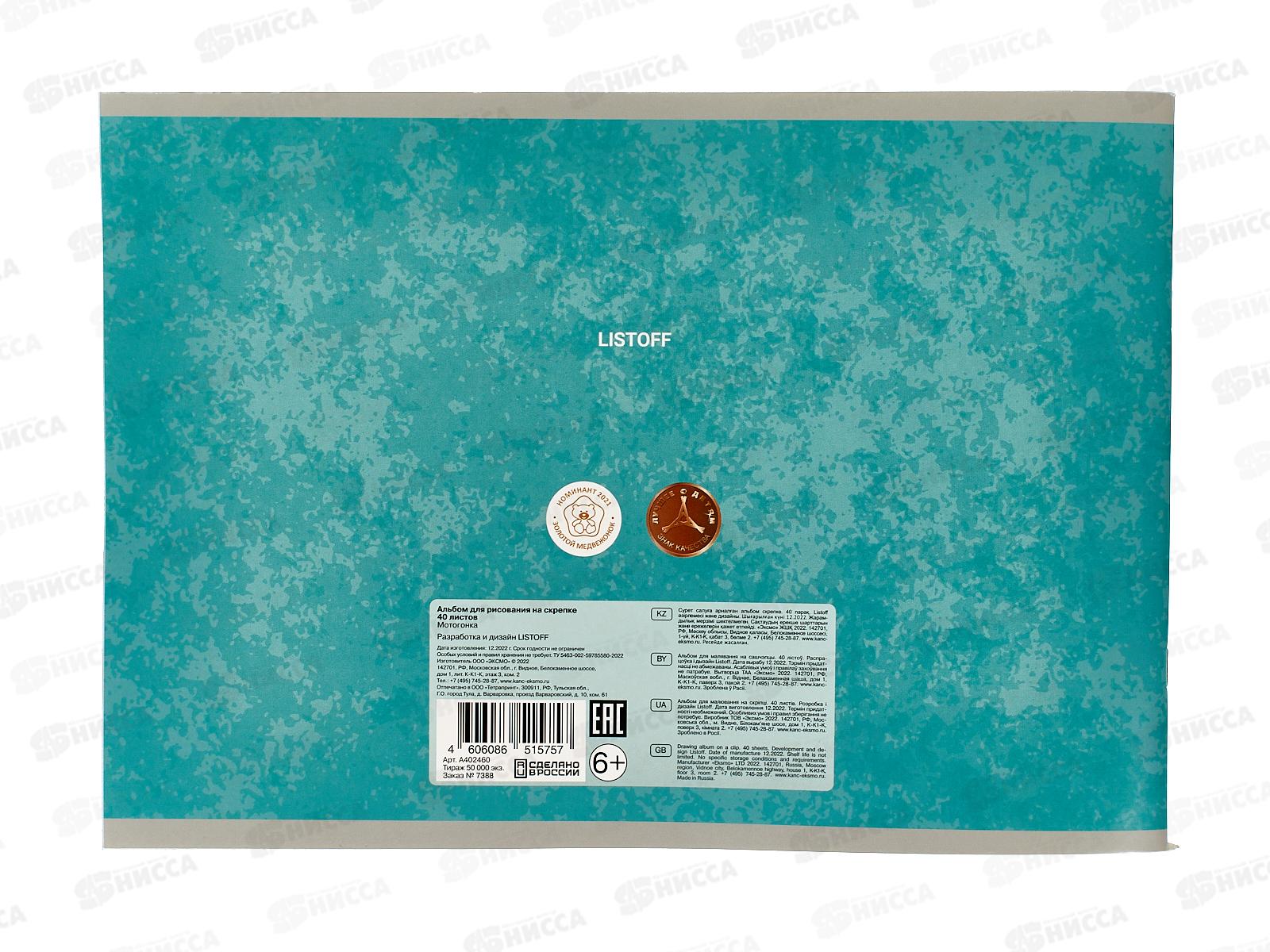 Альбом для рисования 40л ЭКСМ Мотогонка мел.карт.А402460 *30