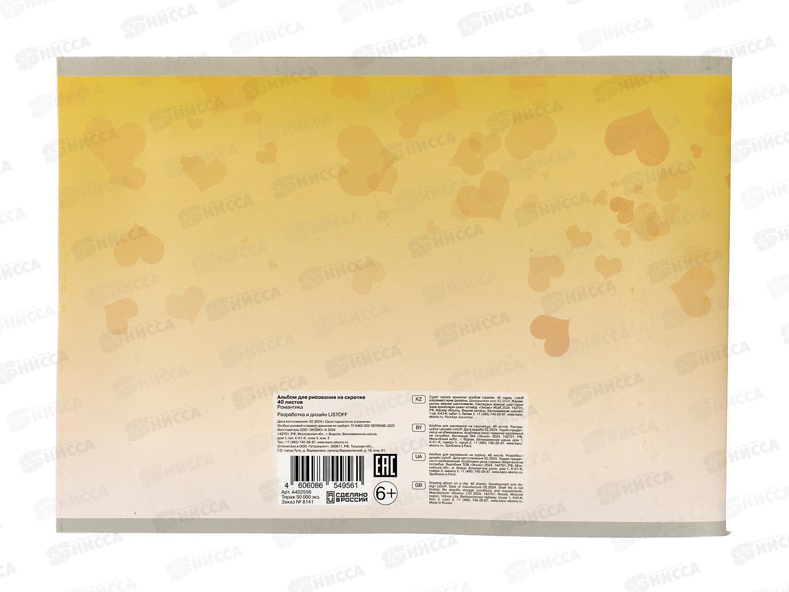 Альбом для рисования 40л ЭКСМ Романтика мел.карт.А402556 *