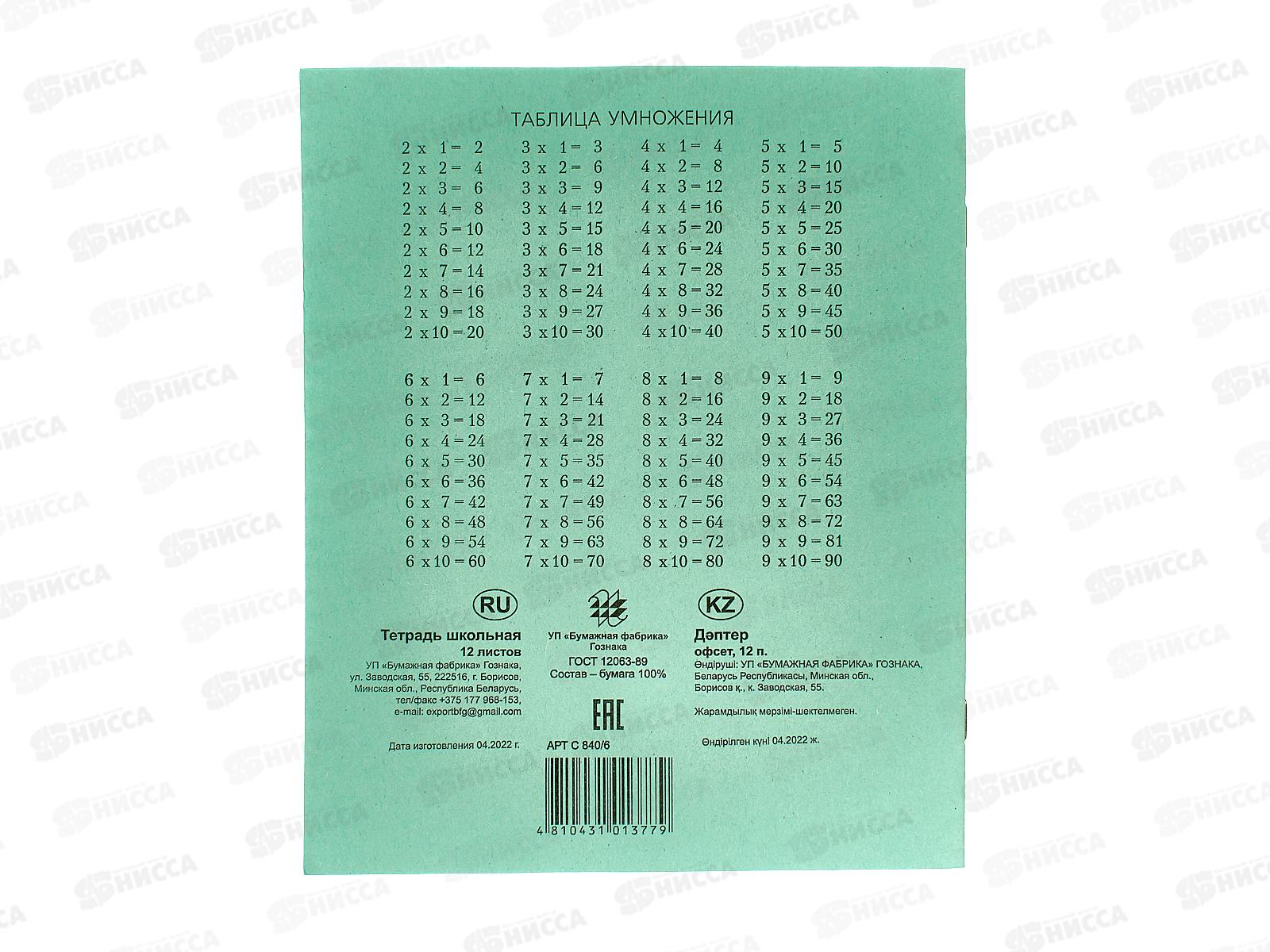 Тетрадь 12листов крупная клетка Бумажная фабрика С 840/6 *300