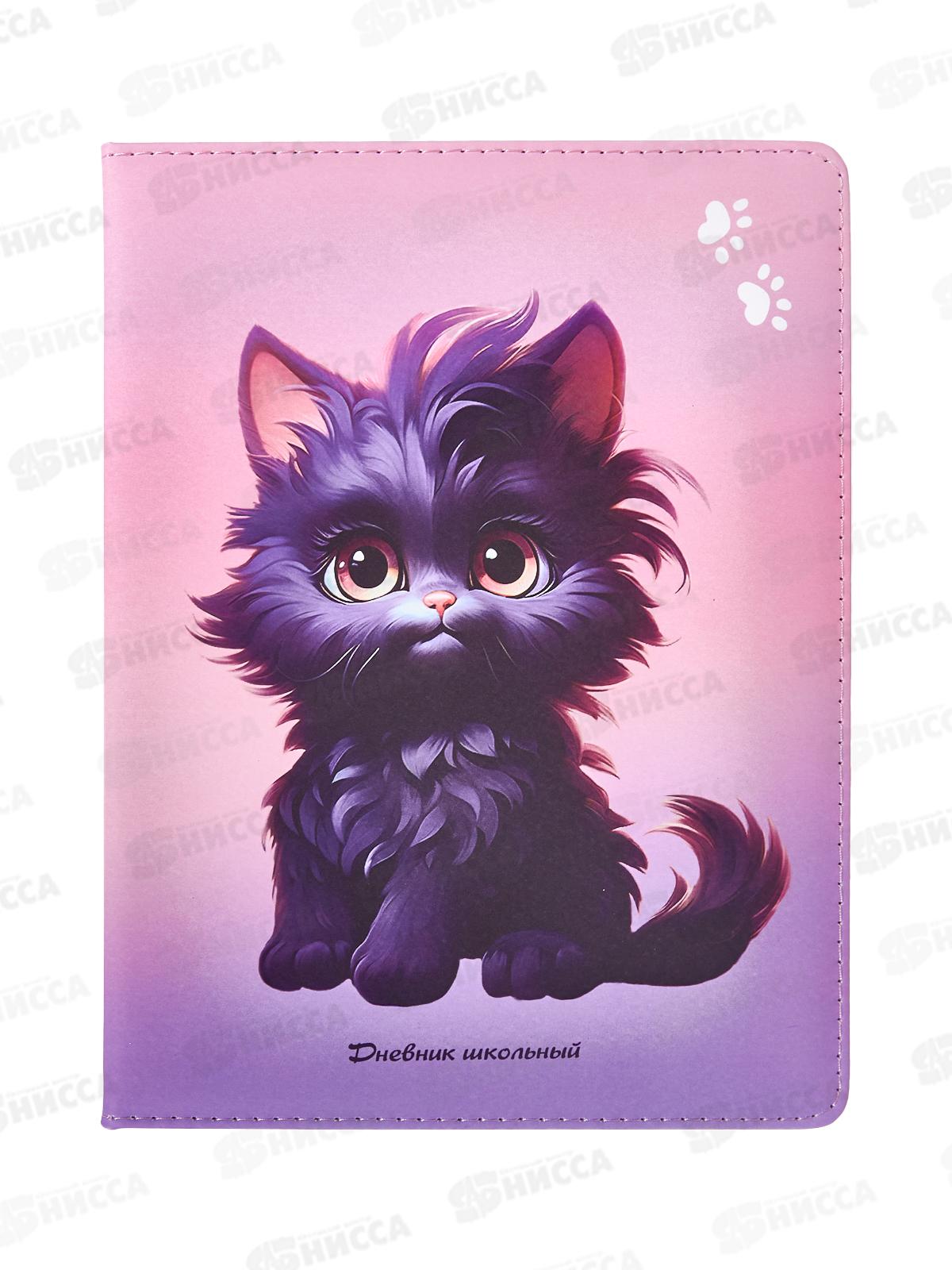 Дневник ПП Чёрный котик кожзам с цветной печатью Д48-2624 *40