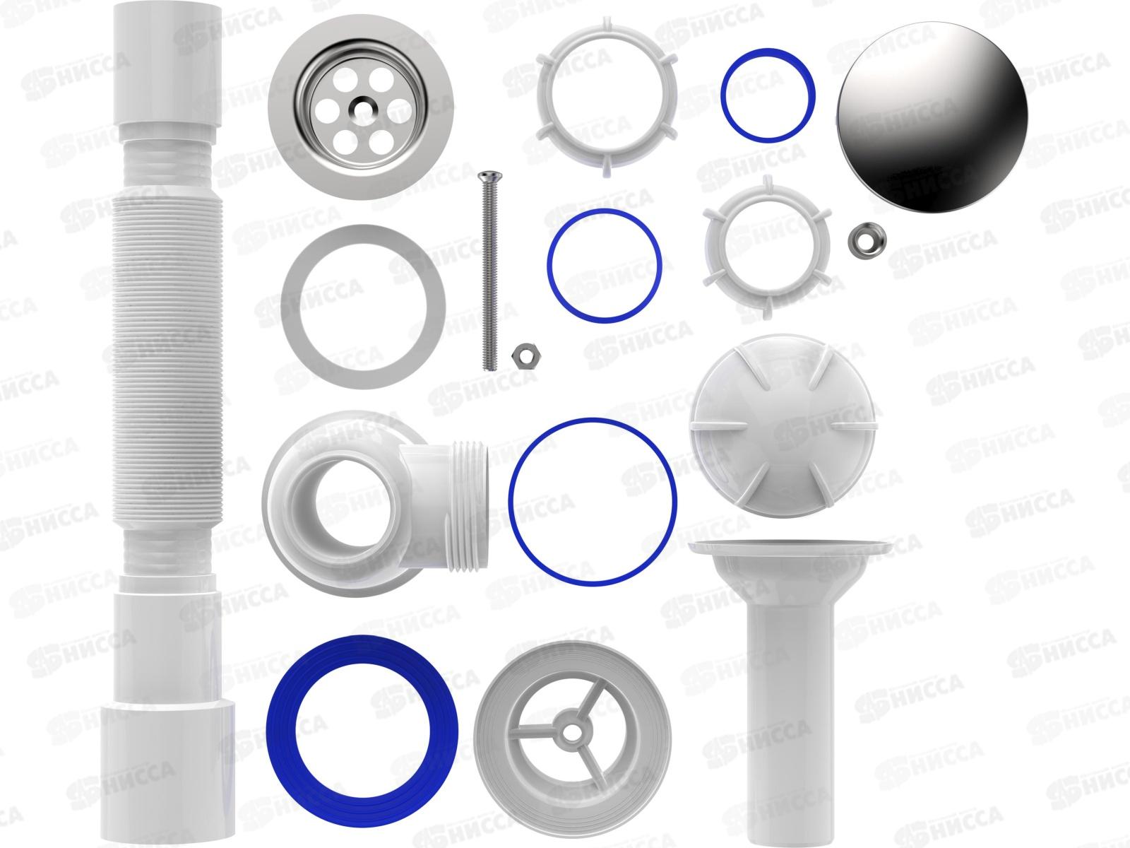 Сифон бутылочного типа от бренда Aquant для раковин и моек с диаметром сливного отверстия 50 мм, с удлиненной горловиной с литым выпуском (тюльпан) с решеткой из нержавеющей стали 70мм. Отличительная особенность этого сифона в комплектации специальной декоративной хромированной крышкой, которая надевается на решётку слива и визуально закрывает её, оставляя достаточно места для свободного слива воды. В результате обычная раковина с простой решеткой на горловине выглядит так, словно на ней установлен дорогой сифон клик-клак. Решетка и декоративная крышка крепится к выпуску на винт 80 мм и гайку шестигранную М6. Корпус сифона увеличенный, для достижения максимальной проточности и поддержания оптимального уровня гидрозатвора с высотой 55мм. Идет в комплекте с гофротрубой с универсальным выходом под два диаметра 40/50мм для подключения к канализации. Сифон прост в установке, позволяет прочистить его в случае засорения без демонтажа и способен улавливать мелкие предметы, например, кольца или серьги. Конструкция корпуса сифона Аквант имеет эксклюзивный дизайн и запатентована патентом на промышленный образец. Внутренняя поверхность стакана сифона с зеркальной полировкой обеспечивает улучшенную проточность. Все пластиковые детали сифона производятся из первичного полипропилена с добавлением снежно-белого красителя. Прокладки изготовлены из высококачественных пластикатов (TPE, PVC, LDPE) и обеспечивают длительный срок службы и высокую ремонтопригодность. Сифон выдерживает перепад температур от +5 до +80 градусов. Все необходимые прокладки, гайки и винты в комплекте.