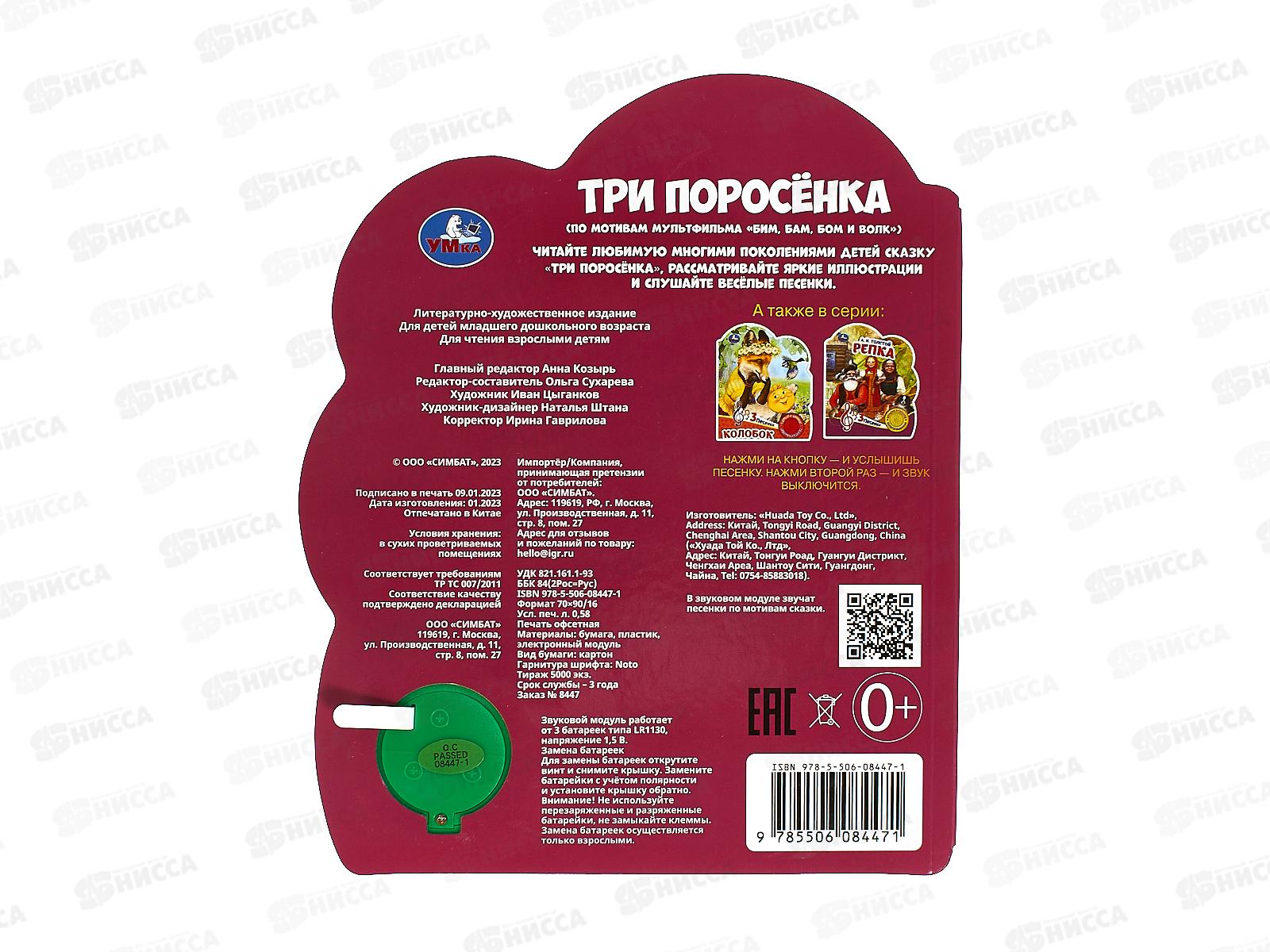 Книга Говорящая 9785506084471 Умка: Три поросёнка 1кнопка 3песни, 8стр.