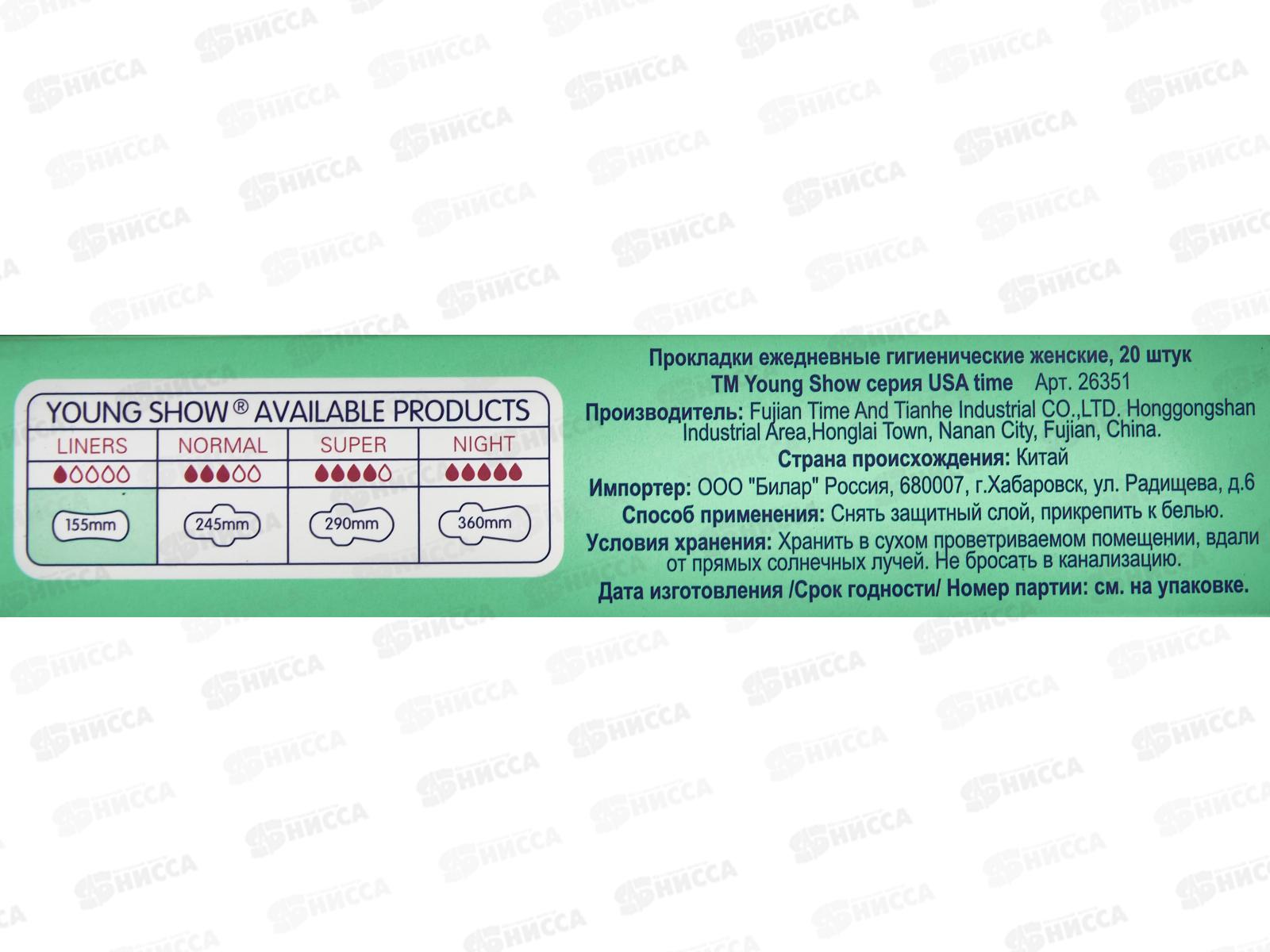 Young Show USA T.M.A. прокладки ежедневные 20шт 15,5см *50