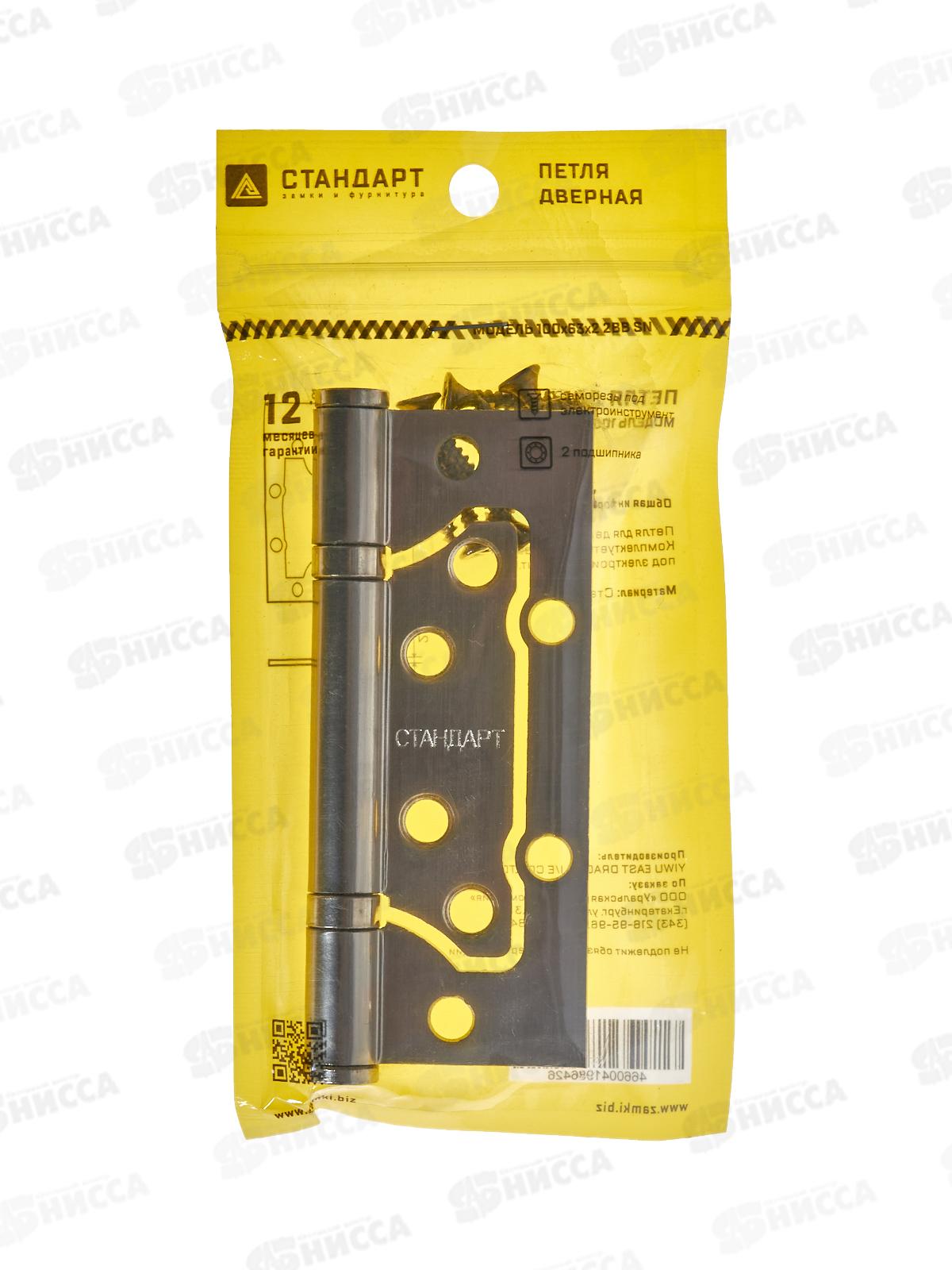 Петля накладная Стандарт 100*63*2мм 2BB SN никель 1шт *20 555
