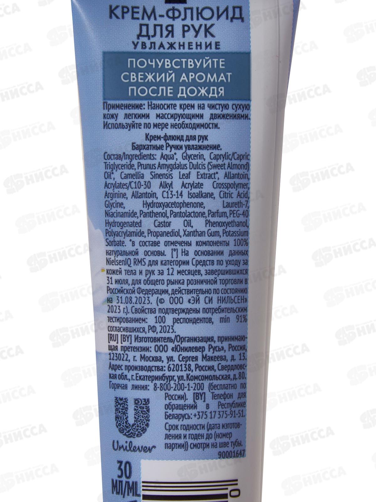 Концерн Калина БАРХАТНЫЕ РУЧКИ Крем-флюид для рук Увлажнение 30мл *18