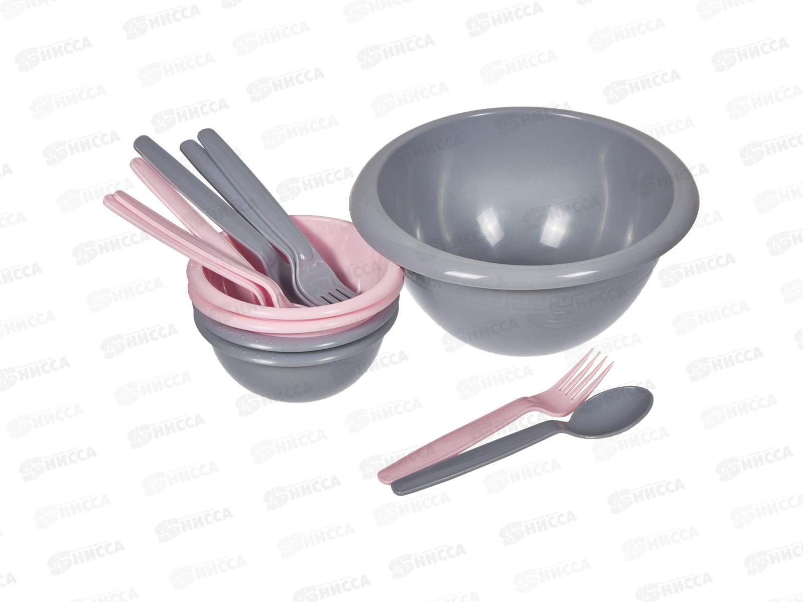 Набор для салата Летний на 4 персоны серый/розовый ИНТ *18