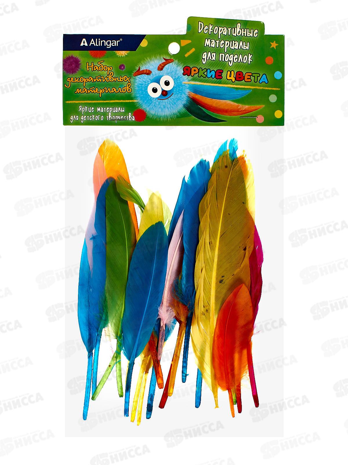 Перья декоративные гладкие Alingar, 20шт, ассорти пакет AL9049 *12