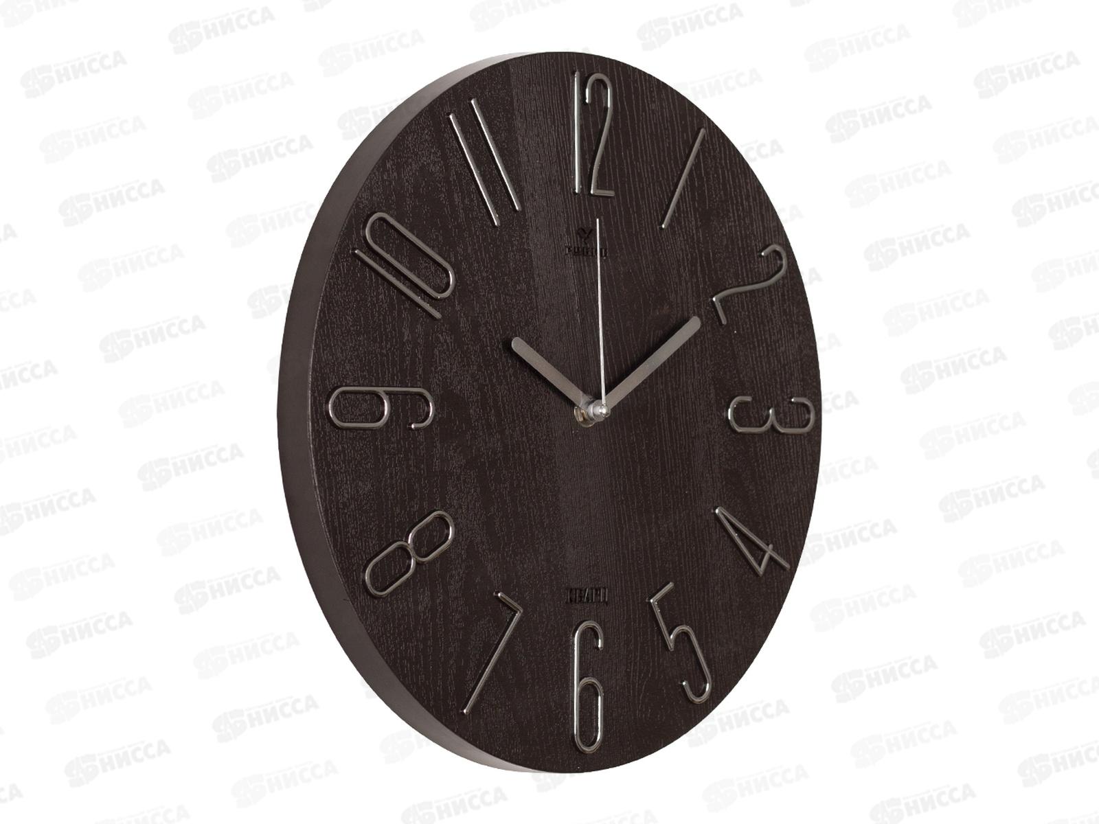 Часы настенные "21 Век" 3010-004 30см Классика Рубин коричневый+серебро