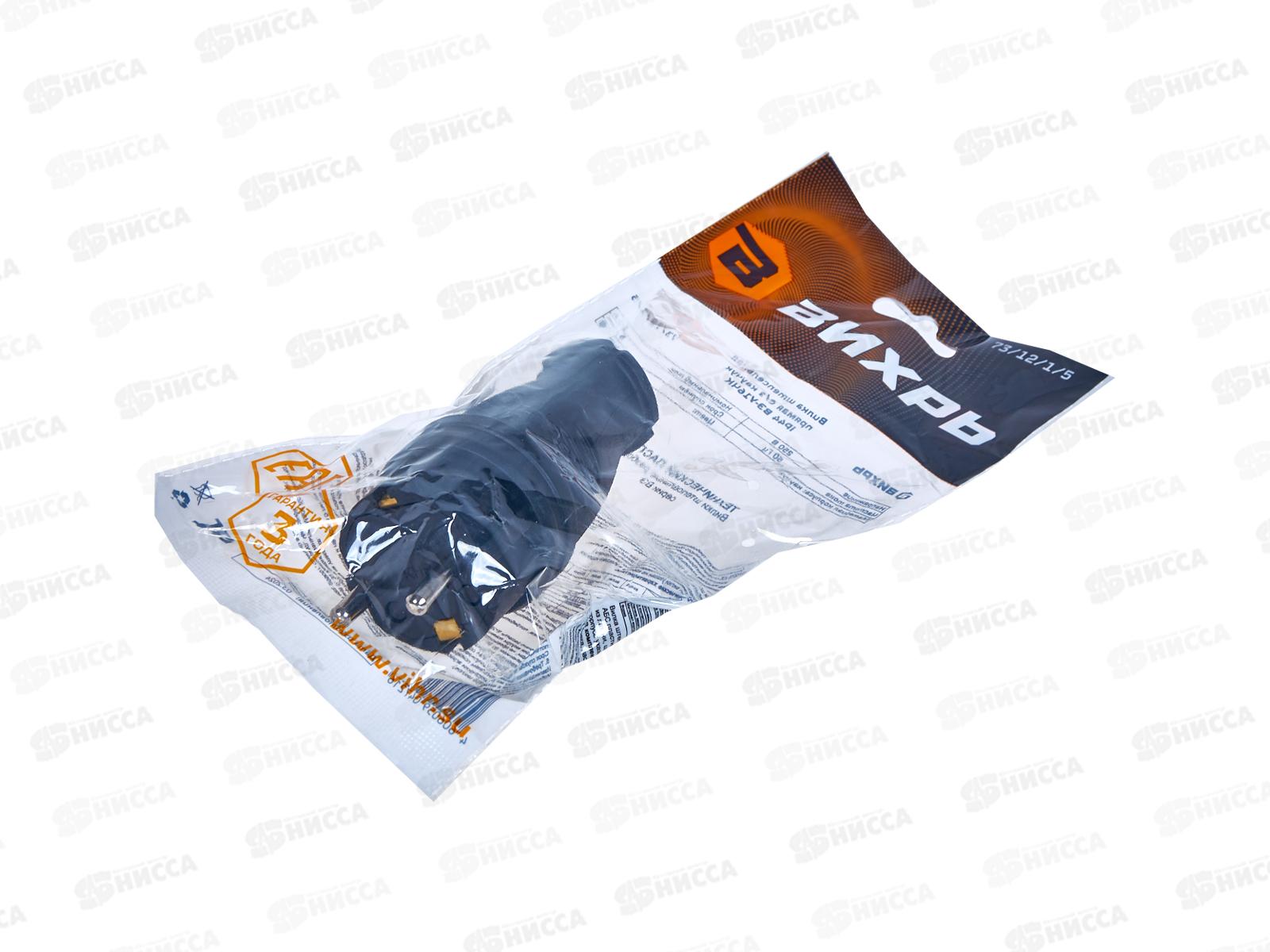 Вилка прямая с заземлением черная каучук IP44 16A 250B Вихрь 73/12/1/5