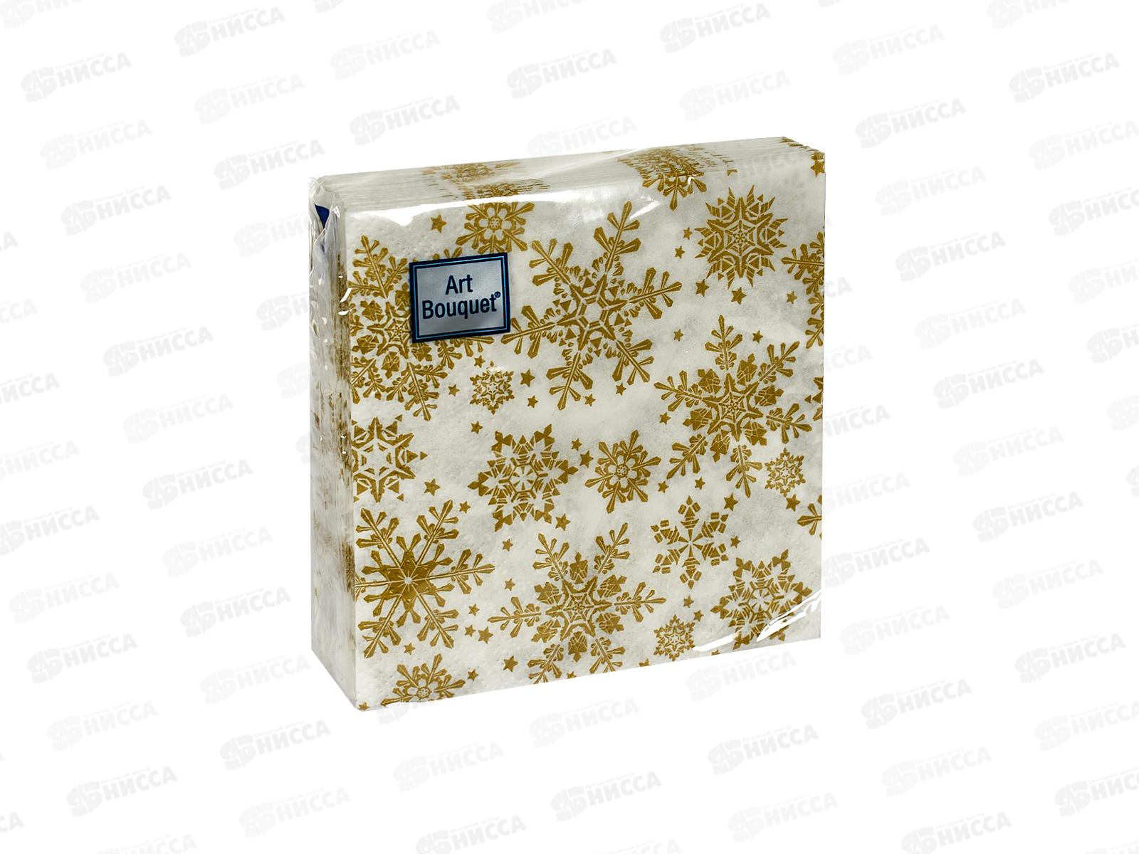 Салфетки 2 слойные 30 листов 20*20 Art Bouquet Золотые снежинки,25173*26