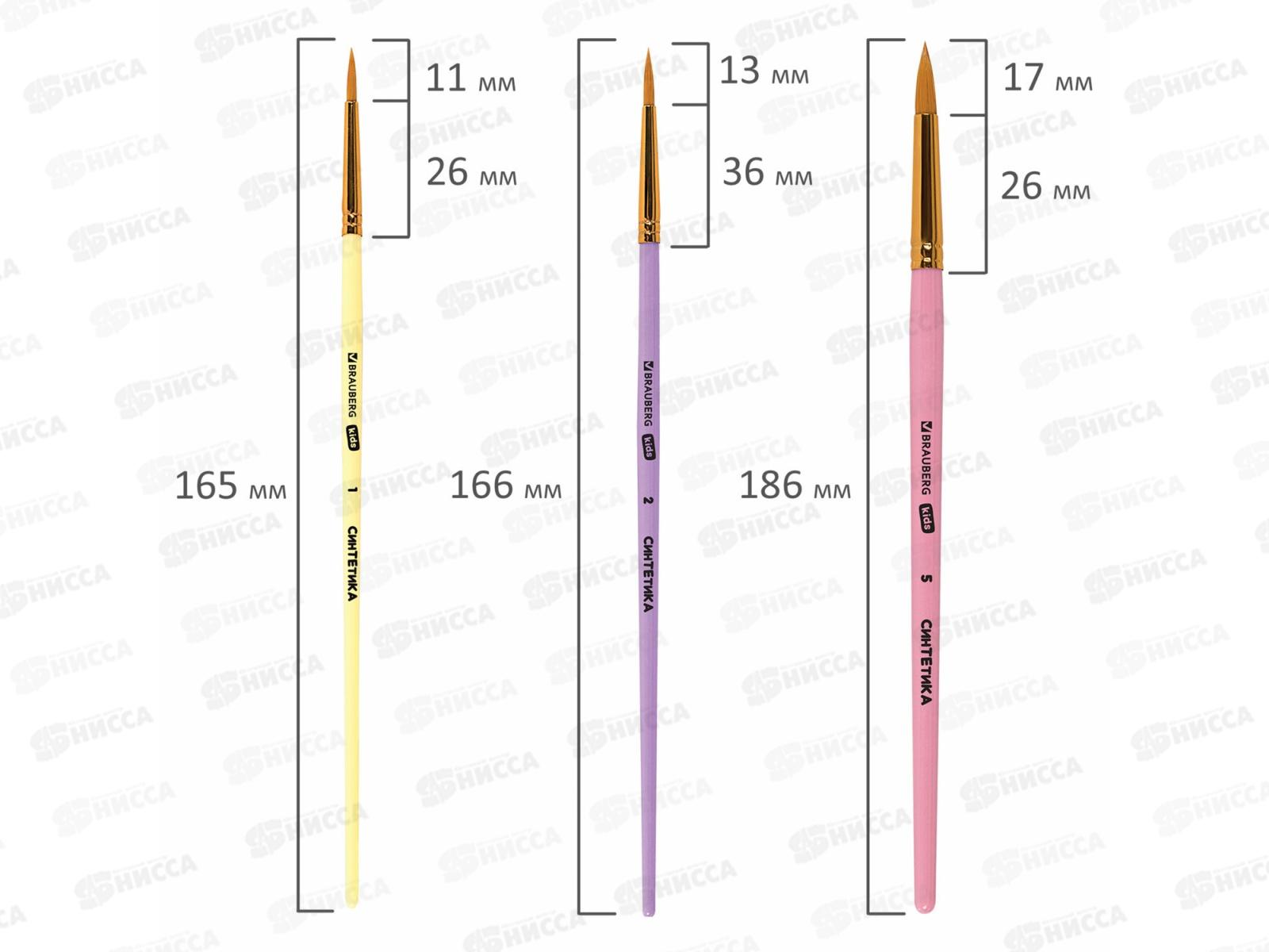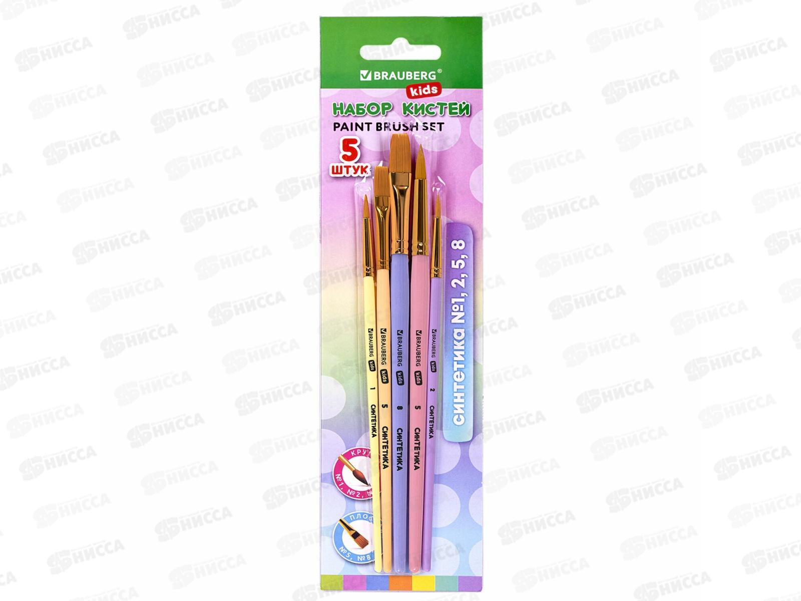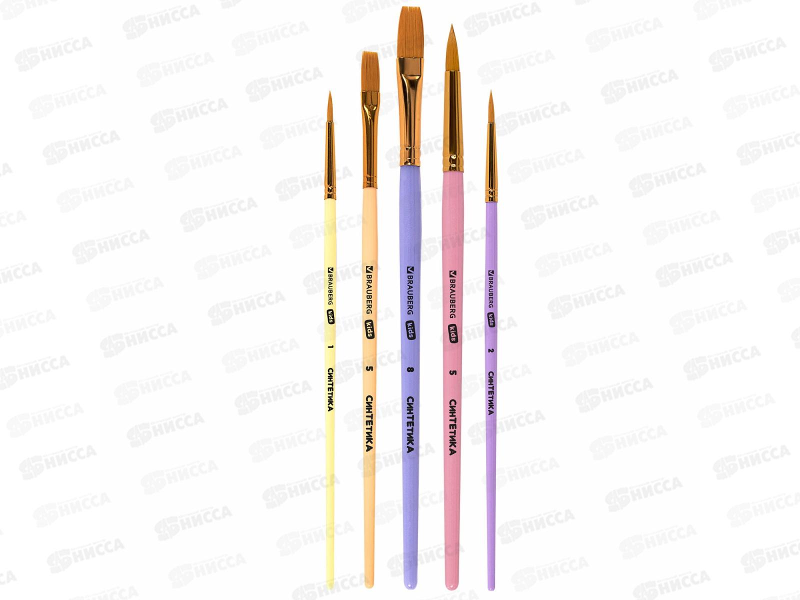 Кисть BRAUBERG kids синтетика 5шт (круг.№1,2,5 плоск.№ 5,8) 201075 *12