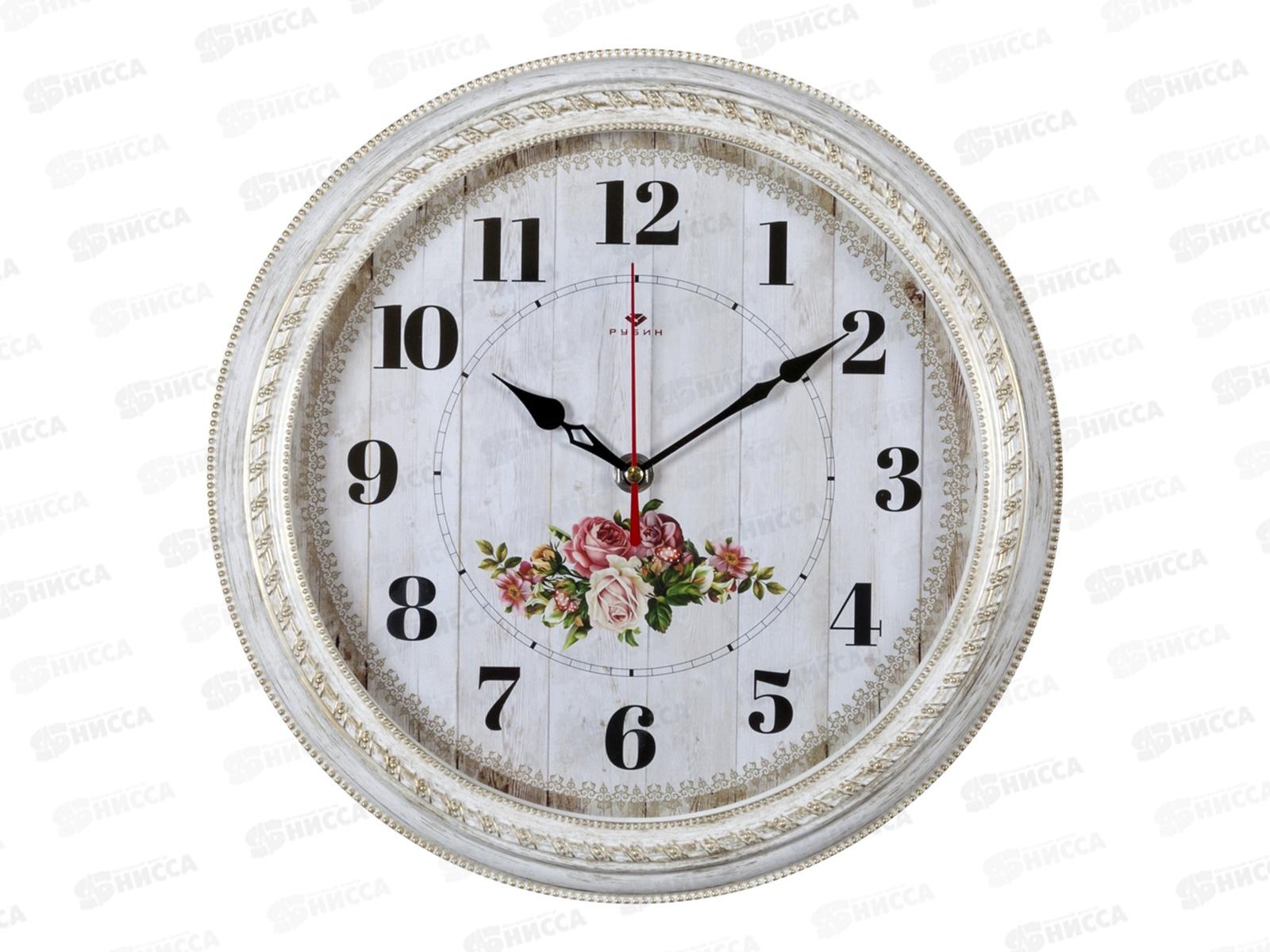 Часы настенные "21 Век" 2950-108 Садовые розы белый с золотом круг Рубин