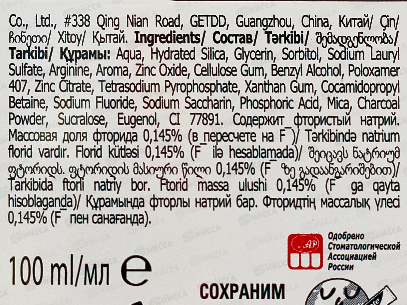 Профессиональная зубная паста Colgate Total 12 Глубокое Очищение содержит микрочастицы угля, которые проникают даже в межзубные промежутки и борются с налетом. Вода, Гидратированный диоксид кремния, Глицерин, Сорбит, лаурилсульфат натрия, Аргинин, Ароматизатор, Оксид цинка, Целлюлозная камедь, Бензиловый спирт, Полоксамер 407, Цитрат цинка, Тетранатриевый пирофосфат, Ксантановая камедь, Кокамидопропилбетаин, фторид натрия, Сахарин натрия, Фосфорная кислота, Слюда, Порошок древесного угля, Сукралоза, Эвгенол, CI 77891. Содержит: Фторид натрия Общее содержание фтора: 1450 ppm