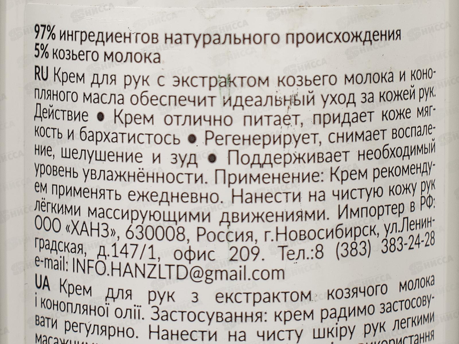 Belle Jardin Goatsmilk Крем для рук Козье молоко + масло конопли 250мл