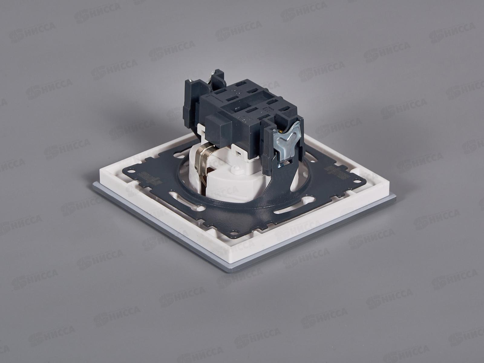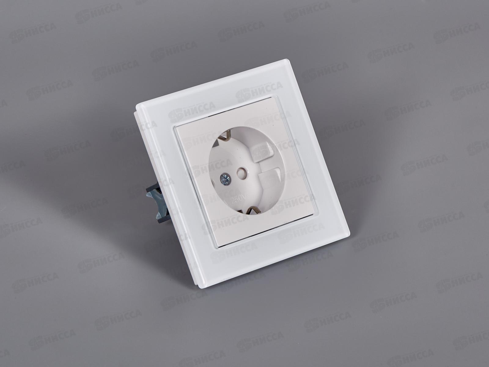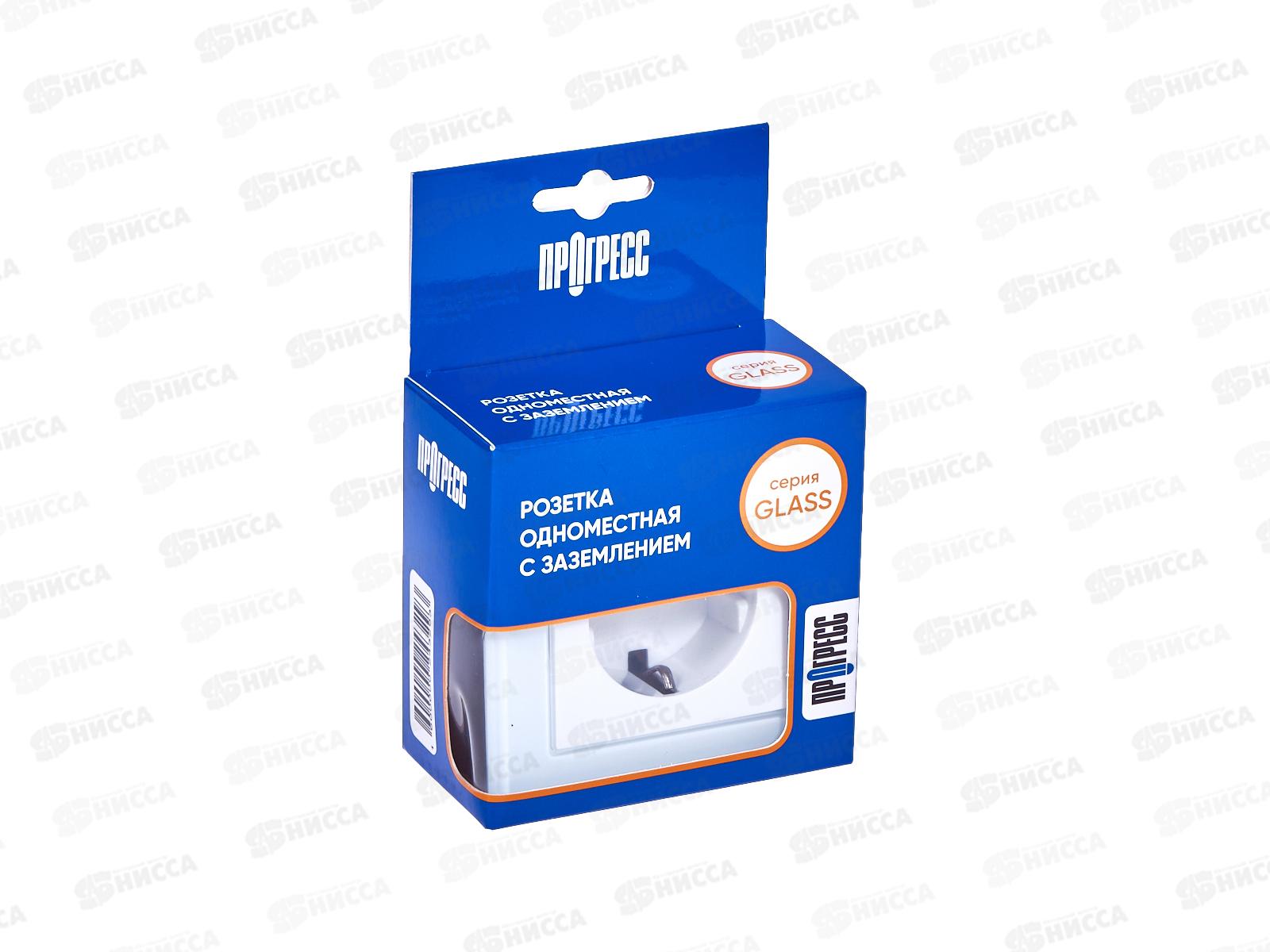 Розетка скрытой установки 1 местная Прогресс Glass с заземлением, защитные шторки, белая *10/100