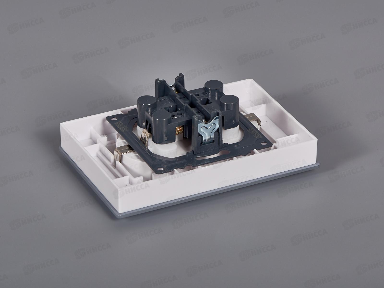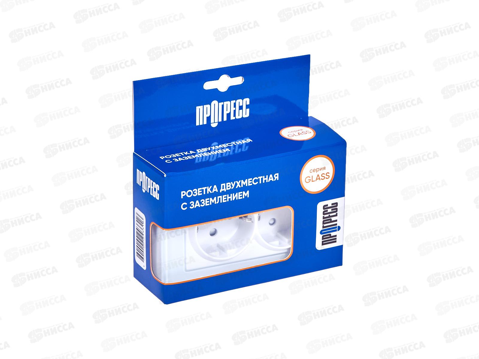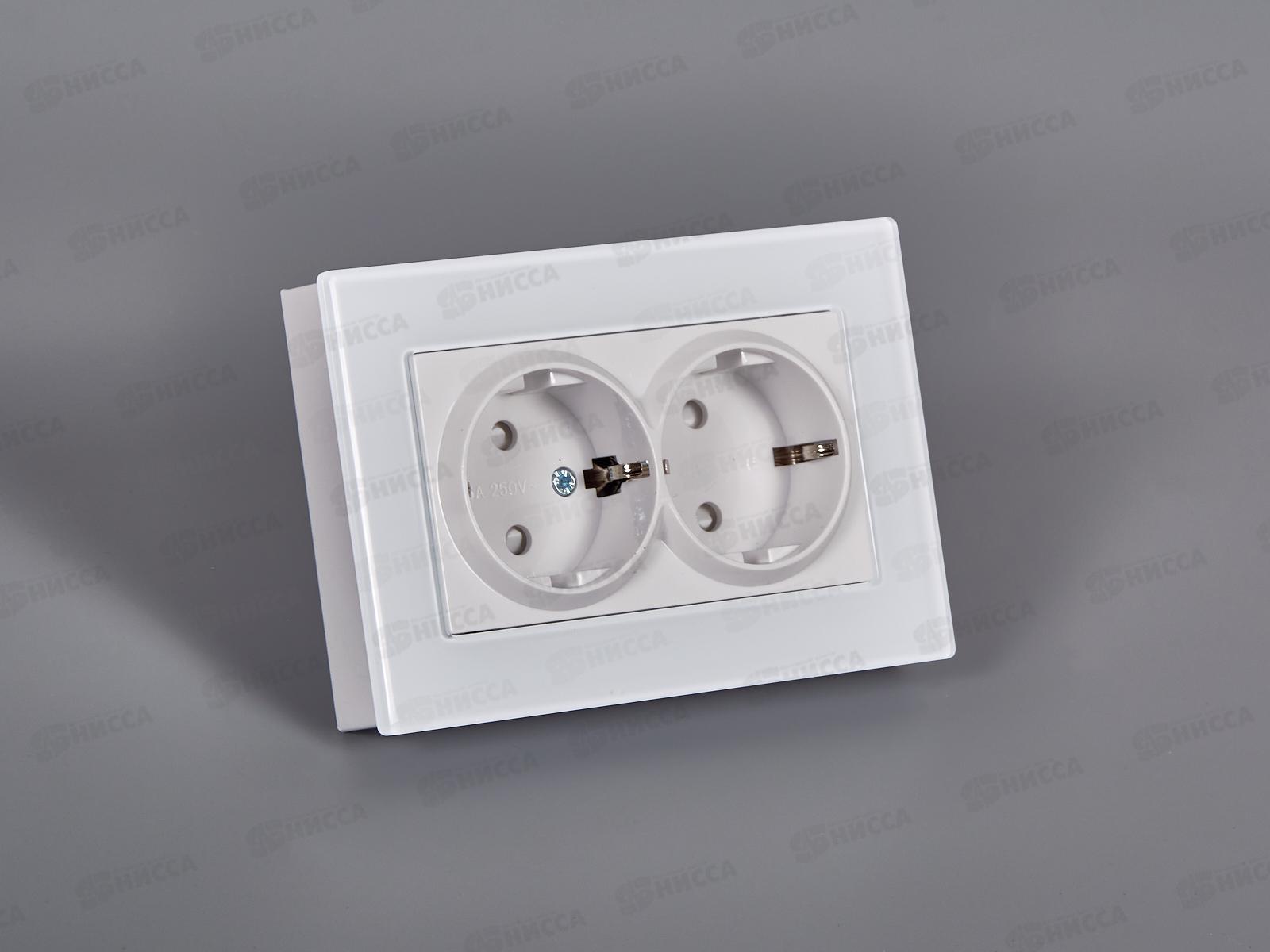 Розетка скрытой установки 2 местная Прогресс Glass с заземлением, защитные шторки, белая *10/100