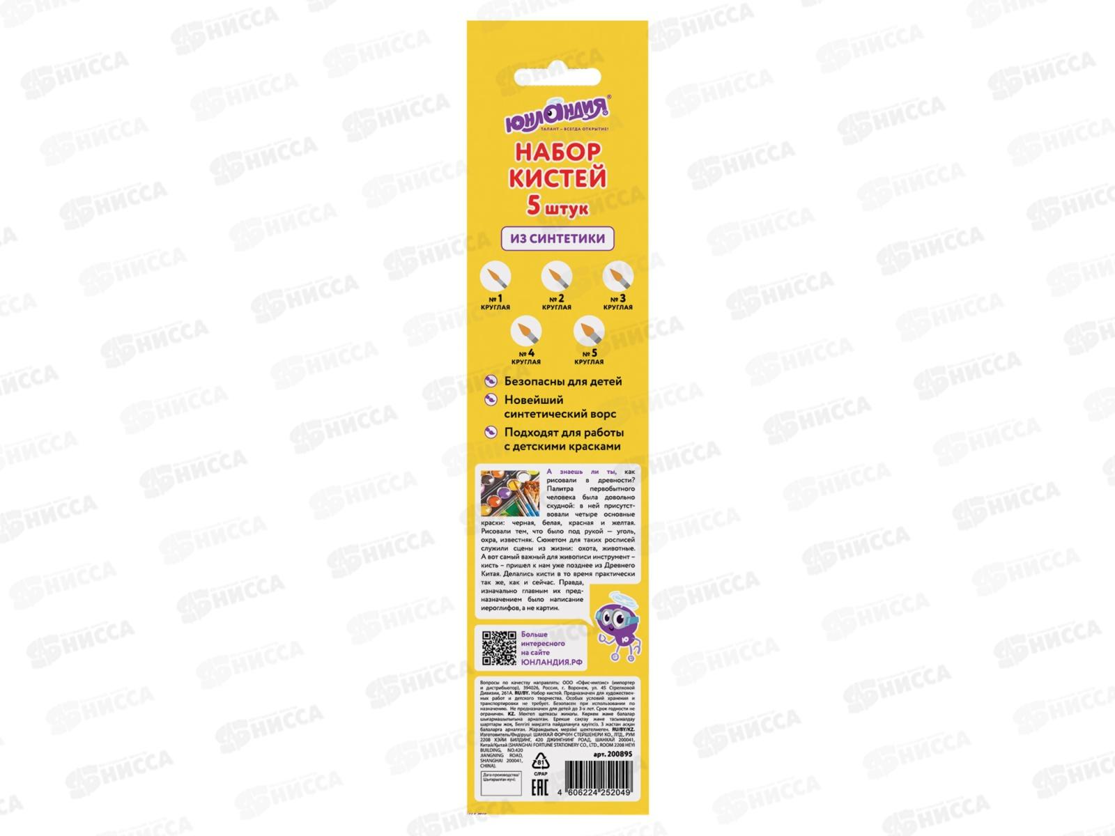 Кисти Юнландия набор 5шт(синтетика,круглые №1,2,3,4,5), 200895