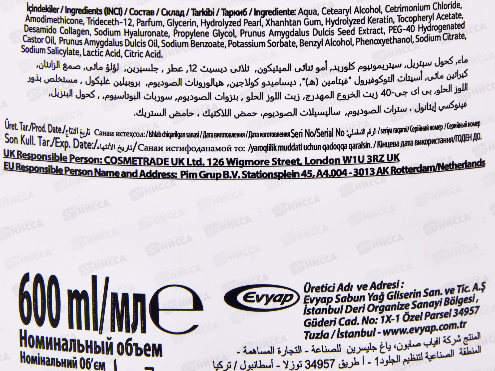 Состав: вода, цетеариловый спирт, хлорид цетримония, амодиметикон, тридецет-12, парфюмерная композиция, глицерин, гидролизованный жемчуг, ксантановая камедь, гидролизованный кератин, токоферилацетат, дезамидоколлаген, гиалуронат натрия, пропиленгликоль, экстракт семян сладкого миндаля (Prunus Amygdalus Dulcis), ПЭГ-40 гидрогенизированное касторовое масло, масло сладкого миндаля (Prunus Amygdalus Dulcis), бензоат натрия, сорбат калия, бензиловый спирт, феноксиэтанол, цитрат натрия, салицилат натрия, молочная кислота, лимонная кислота.