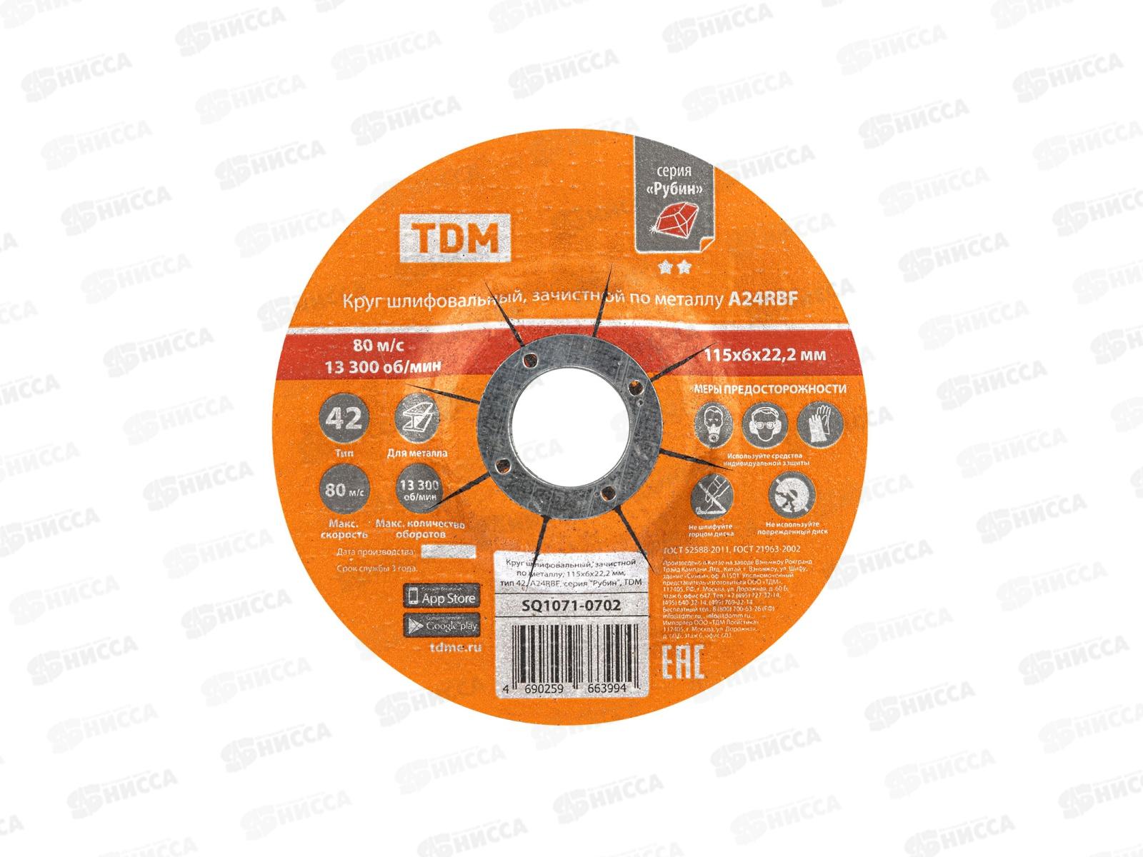 Круг зачистной по металлу, 115х6х22,2 тип 42, A24RBF, Рубин TDM