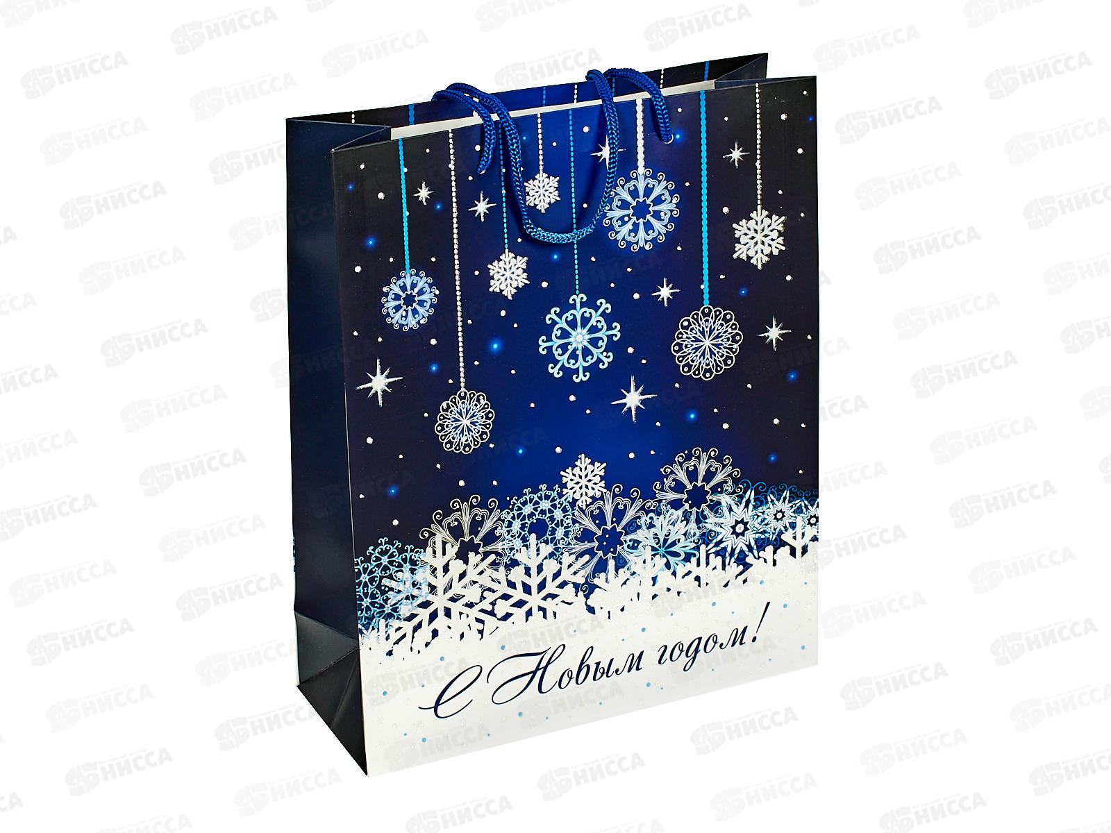 Пакет подарочный MI 26х32х10см (L) Сияющие снежинка, ПКП-6675 *12