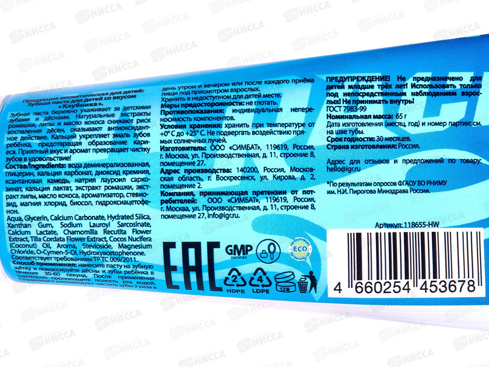 Тип товара: Зубная паста