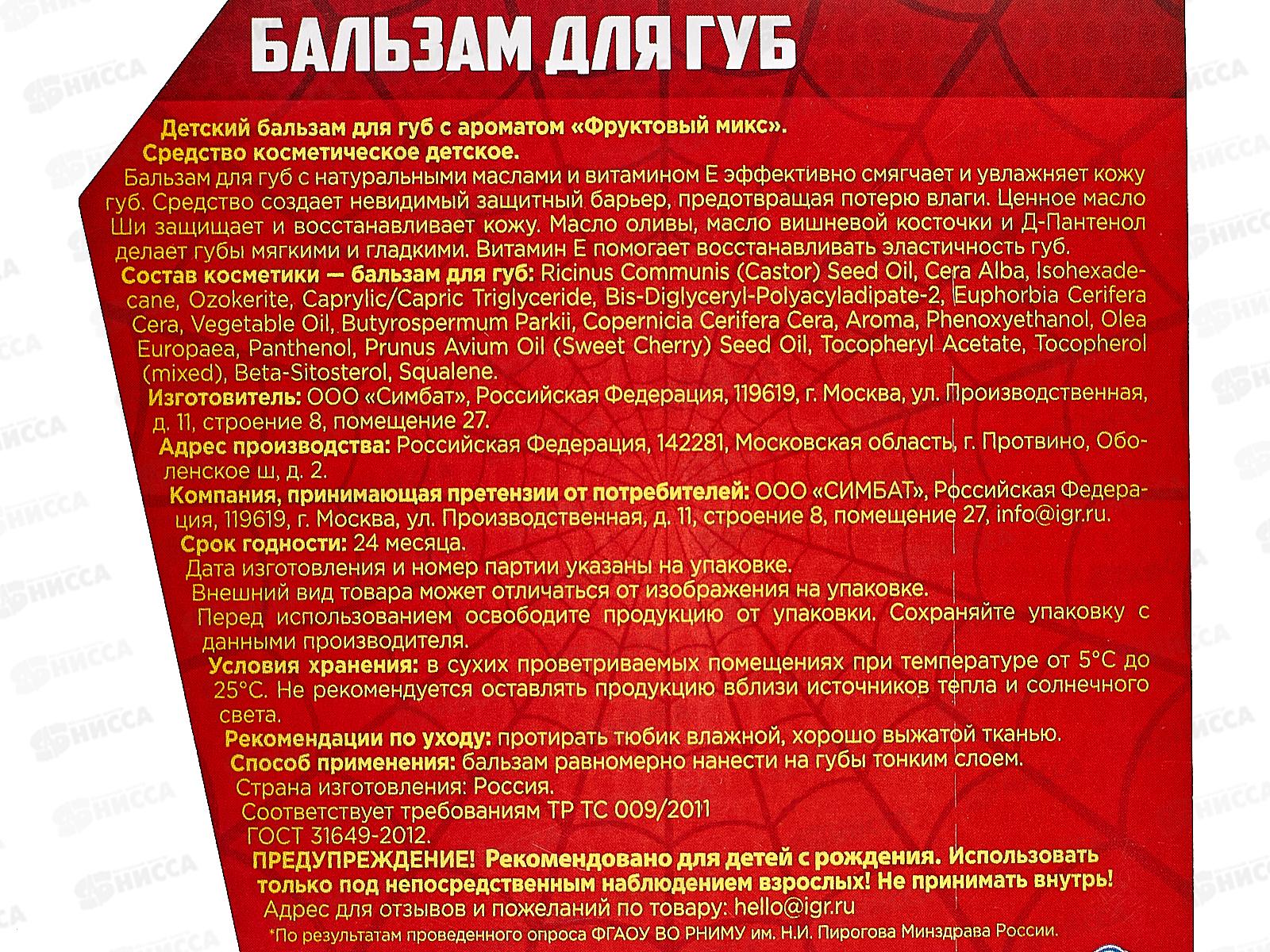 Умка Заботливая мама Бальзам для губ Супергерои фруктовый микс 3,34г, 11612-SH *56