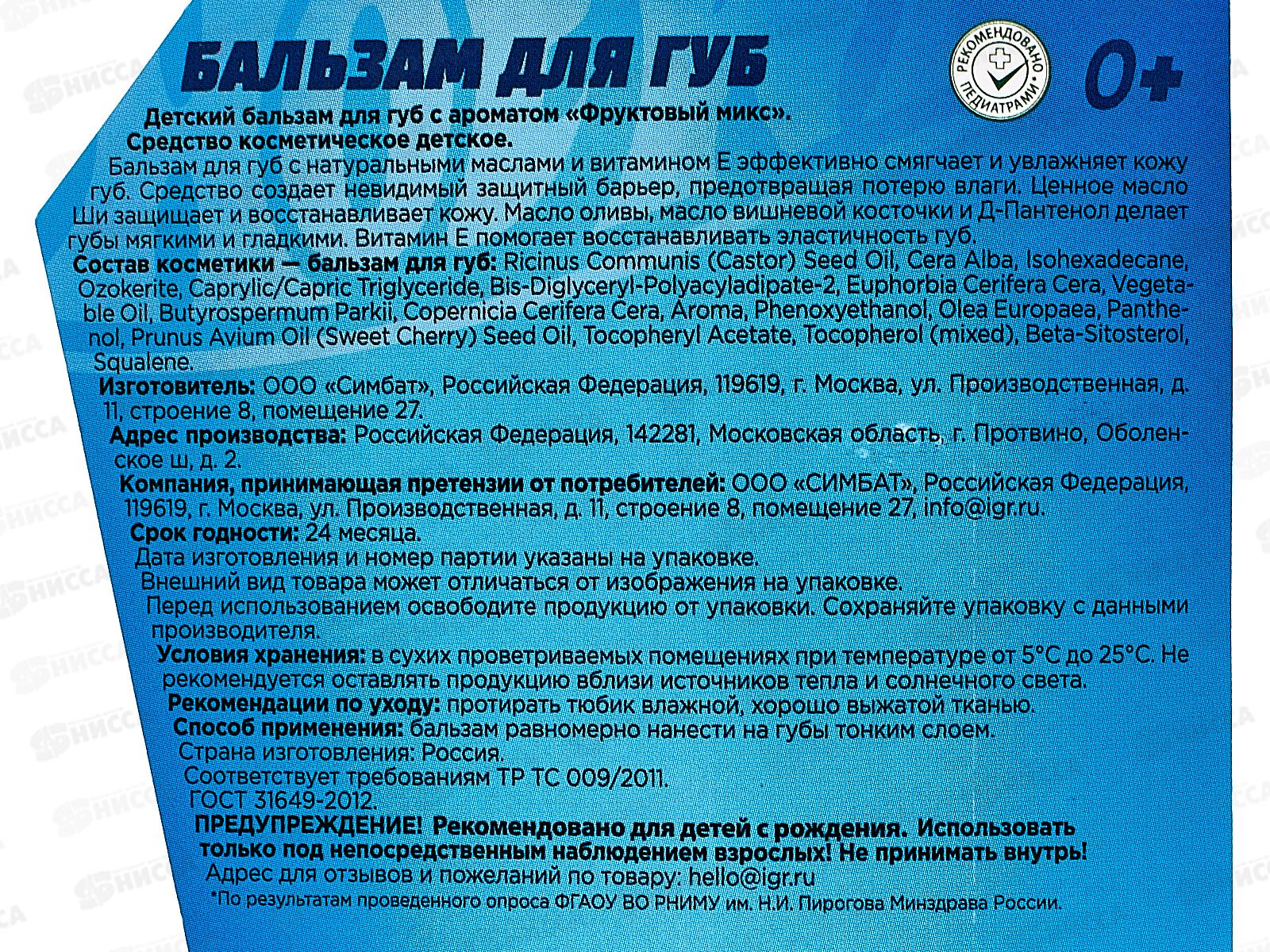 Умка Заботливая мама Бальзам для губ Хот Вилс фруктовый микс 3,34г 116128-HW *56