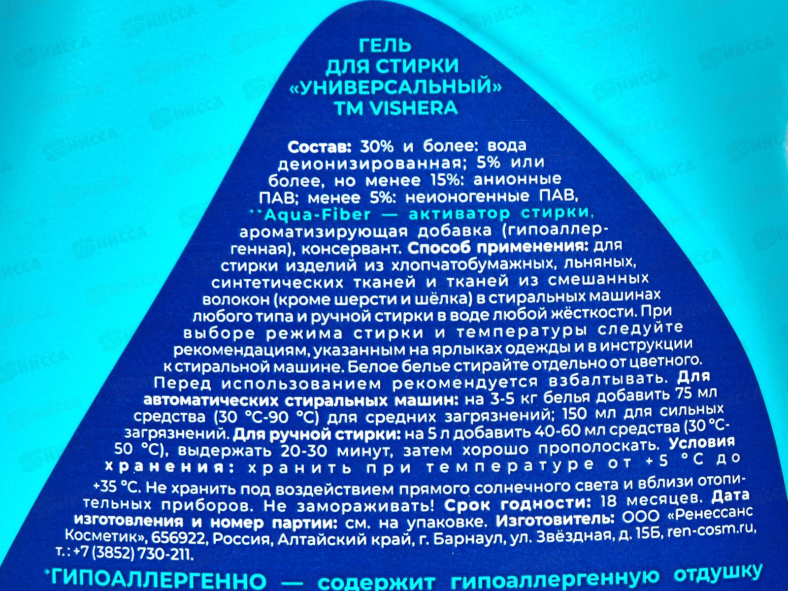 Vishera гель для стирки Anti-allergic 900мл *10 3583
