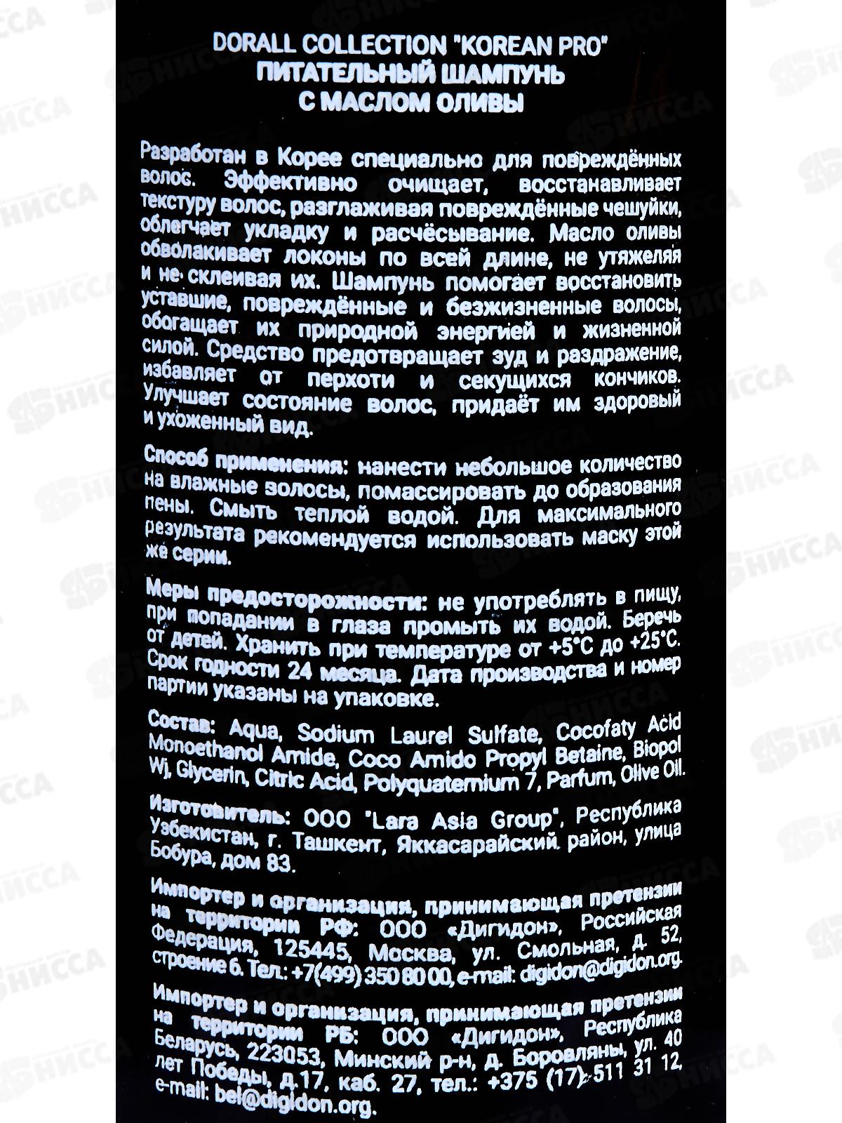 Формула данной линейки разработана в Корее. Эффективно очищает, восстанавливает текстуру волос, разглаживая повреждённые чешуйки, облегчает укладку и расчёсывание. Масло оливы обволакивает локоны по всей длине, не утяжеляя и не склеивая их. Шампунь помогает восстановить уставшие, повреждённые и безжизненные волосы, обогащает их природной энергией и жизненной силой. Средство предотвращает зуд и раздражение, избавляет от перхоти и секущихся кончиков. Улучшает состояние волос, придаёт им здоровый и ухоженный вид. Облегчает расчесывание. Состав: Aqua, Sodium laurel sulfate, cocofaty acid monoethanol amide, coco amido propyl betaine, kathon cg. Glycerin, citric acid. parfum, olive oil.