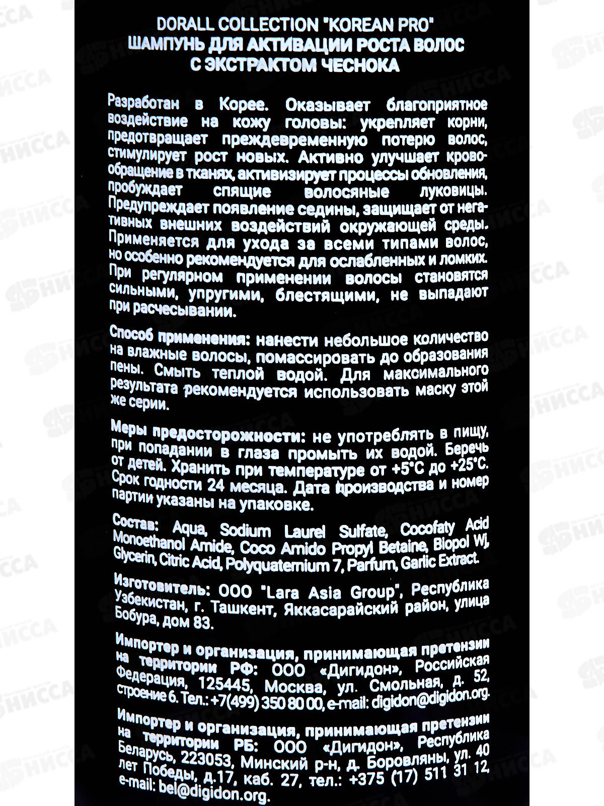 Разработан в Корее. Оказывает благоприятное воздействие на кожу головы: укрепляет корни, предотвращает преждевременную потерю волос, стимулирует рост новых. Активно улучшает кровообращение в тканях, активизирует процессы обновления, пробуждает спящие волосяные луковицы. Предупреждает появление седины, защищает от негативных внешних воздействий окружающей среды. Применяется для ухода за всеми типами волос, но особенно рекомендуется для ослабленных и ломких. При регулярном применении волосы становятся сильными, упругими, блестящими, не выпадают при расчесывании. Состав: Аqua, Sodium laurel sulfate, cocofaty acid, monoethanol amide, coco amido propyl betaine, kathoncg. Glycerin, citric acid.parfum, garlic extract.
