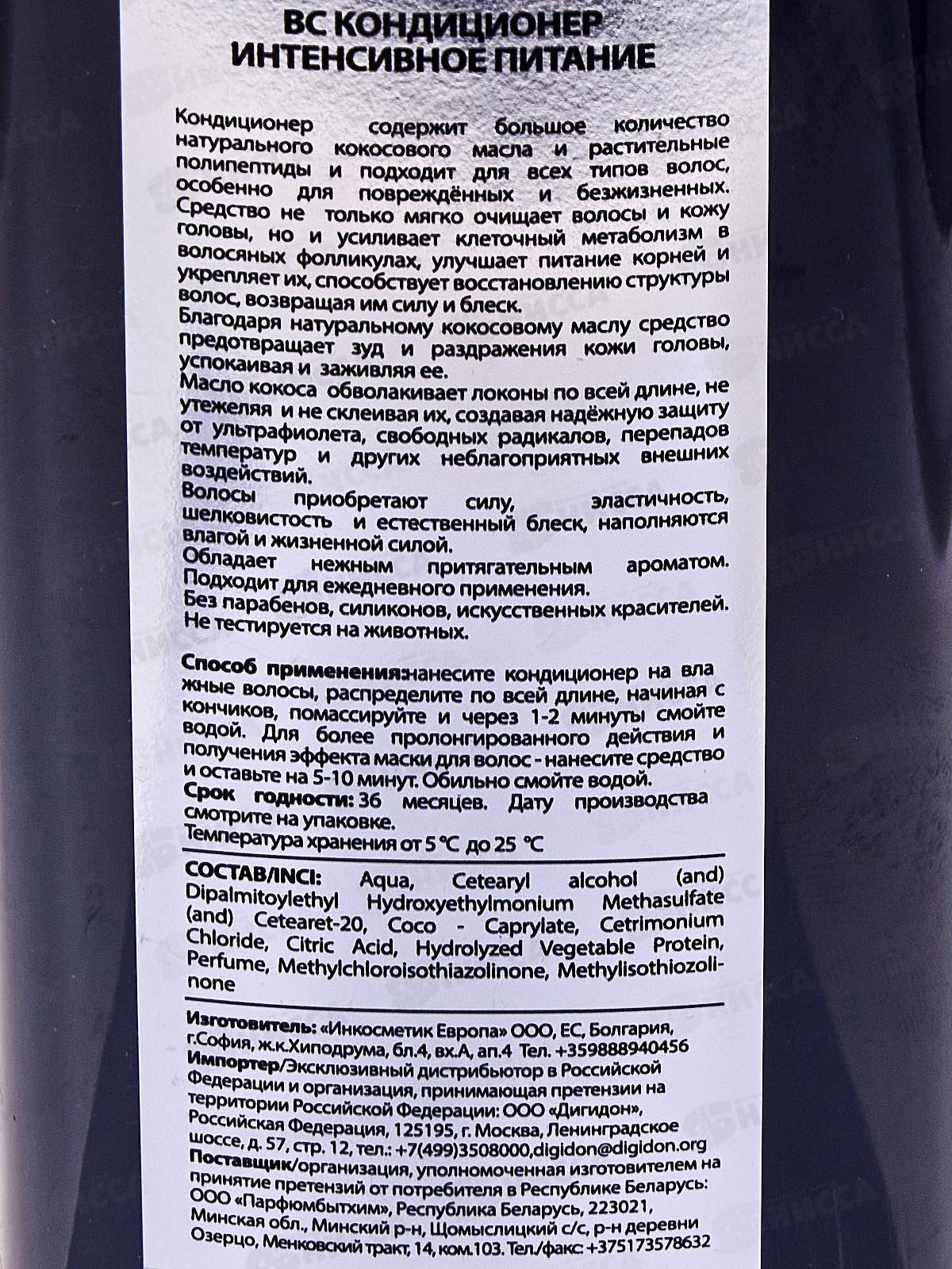 Кондиционер содержит большое количество натурального кокосового масла и растительные полипептиды и подходит для всех типов волос, особенно для повреждённых и безжизненных. Состав: Aqua, Cetearyl alcohol (and) Dipalmitoylethyl Hydroxyethylmonium Methasulfate (and) Cetearet-20, Coco - Caprylate, Cetrimonium Chloride, Citric Acid, Hydrolyzed Vegetable Protein, Perfume, Methylchloroisothiazolinone, Methylisothiozolinone.