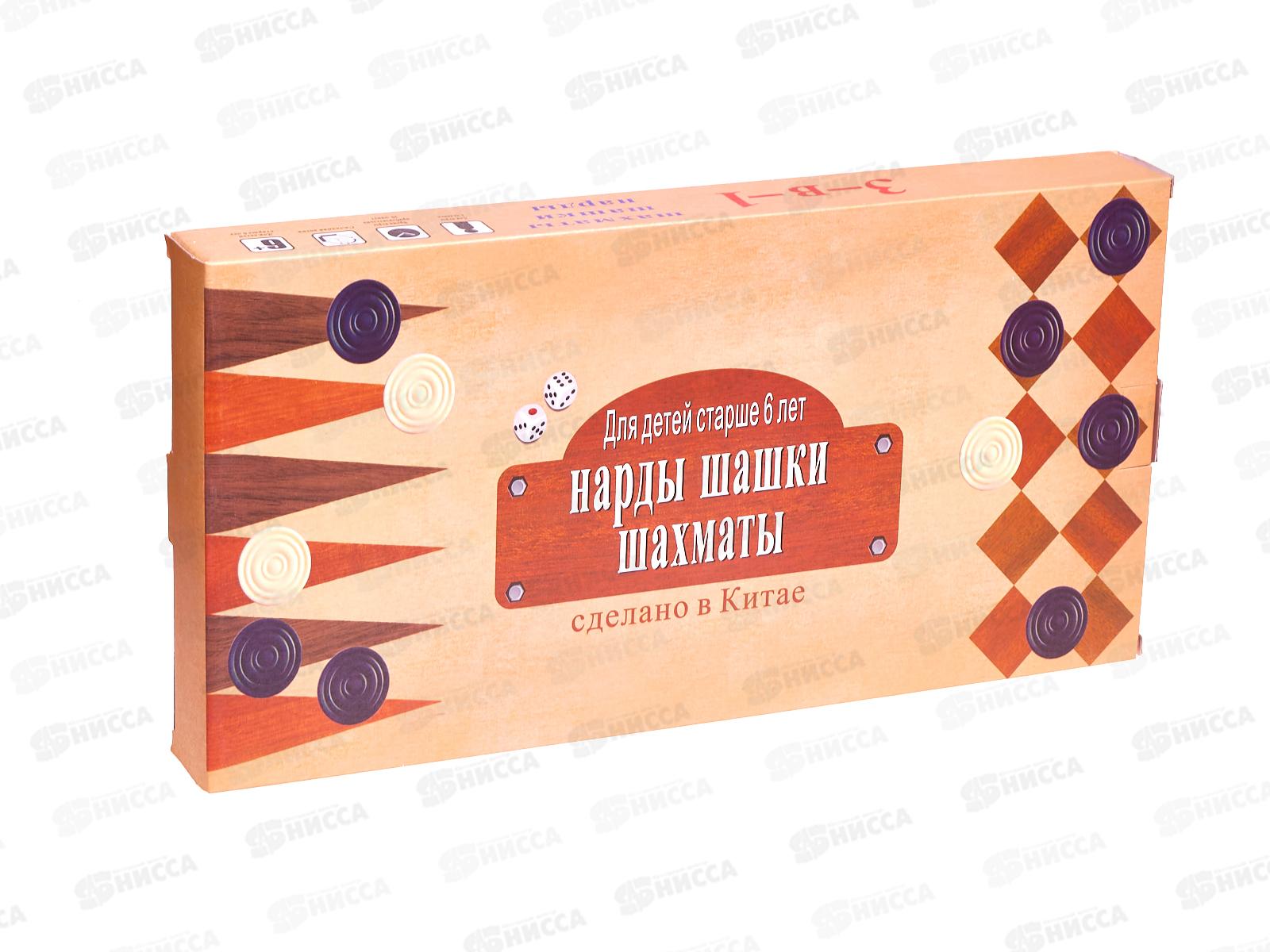 Игра 3 в 1 дерево (шахматы, шашки, нарды) AN02591 (34х17х3,5см)