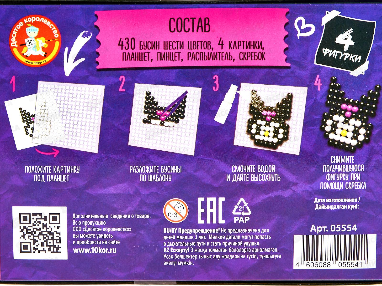 Развивающая аквамозаика для малышей «Злой кролик» - это необычный набор для творчества, с помощью которого можно создавать мозаичные фигурки, и играть с ними. Состав: цветные бусины (6 цветов, диаметр - 5 мм) - 430 шт, картинки для составления мозаики - 4 шт, планшет для сборки мозаики (8х8 см) - 1 шт, пинцет (5,5 см) - 1 шт, распылитель (флакон) - 1 шт, скребок - 1 шт.