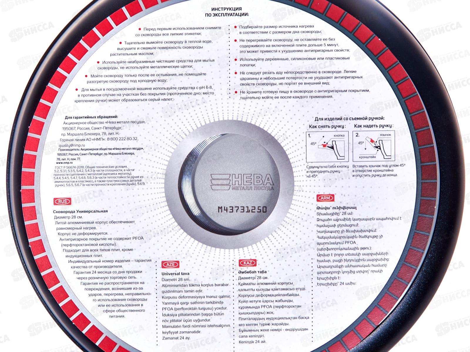Сковорода 28см ПР литая со съемной ручкой 6028