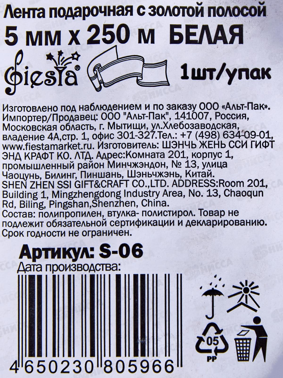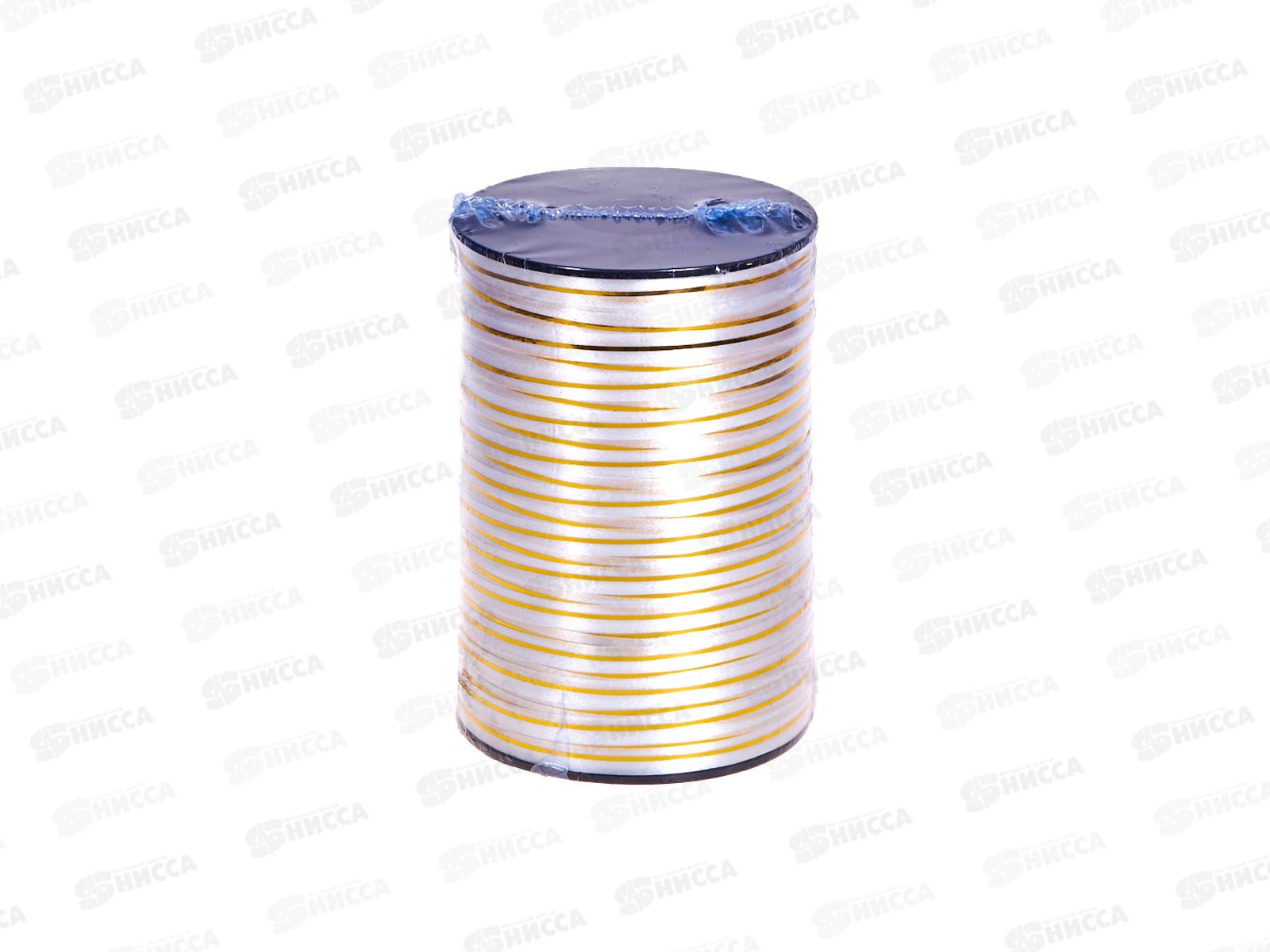 Лента подарочная Fiesta с золотой полосой 5мм/250м Белая S-06 *1