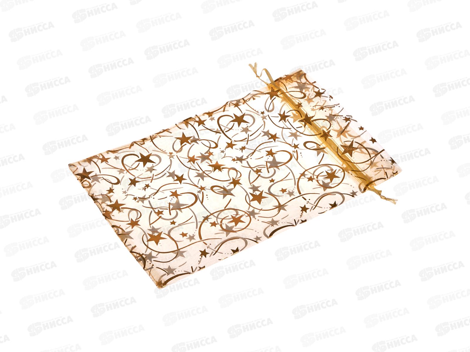 Мешочек из органзы 300*200мм Новый Год Золотой микс 5 дизайнов *50/250