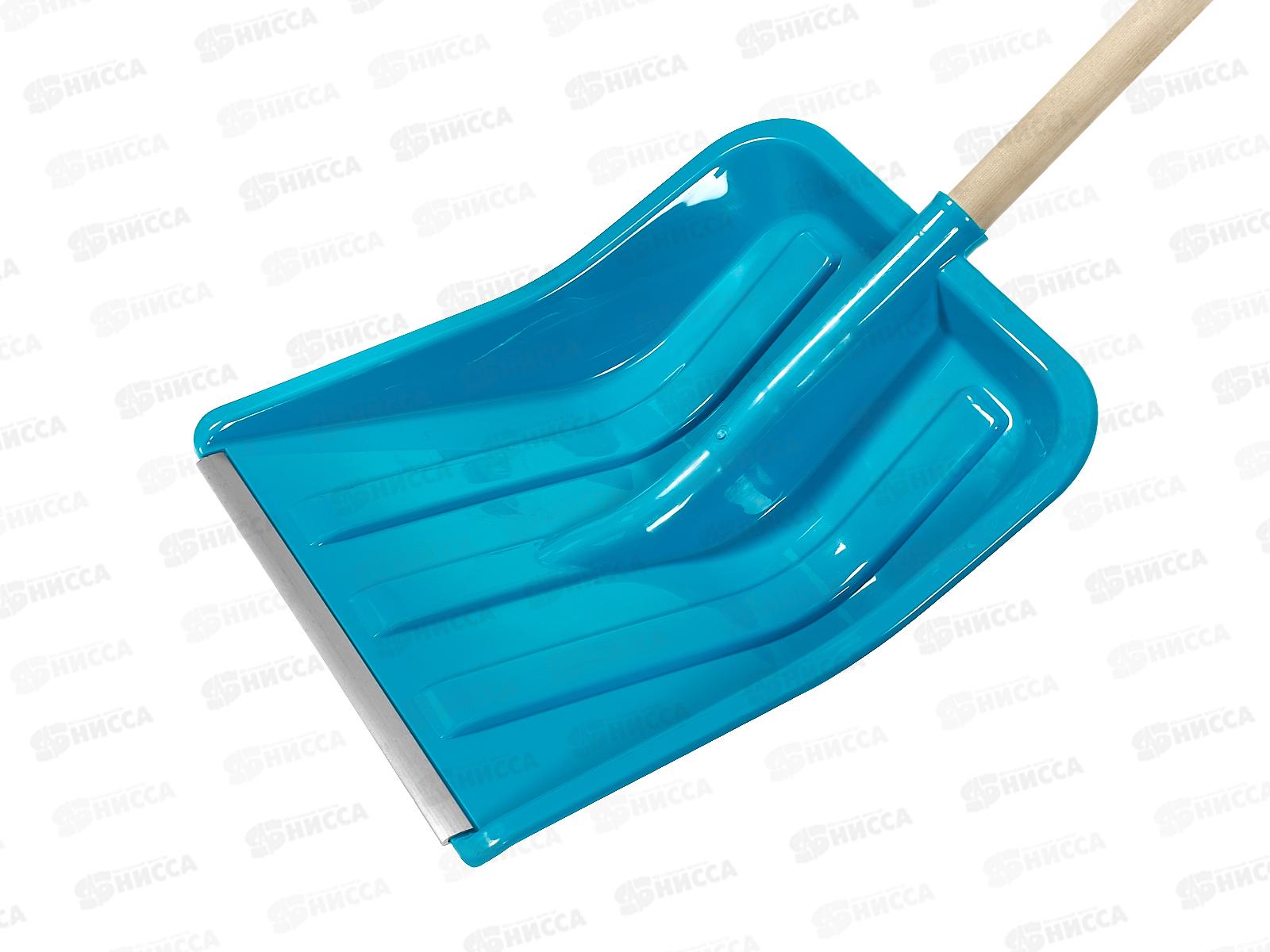 Лопата снеговая ФОБОС 1525*405*450мм бирюзовая с планкой, березовый черенок высшего сорта *5/125