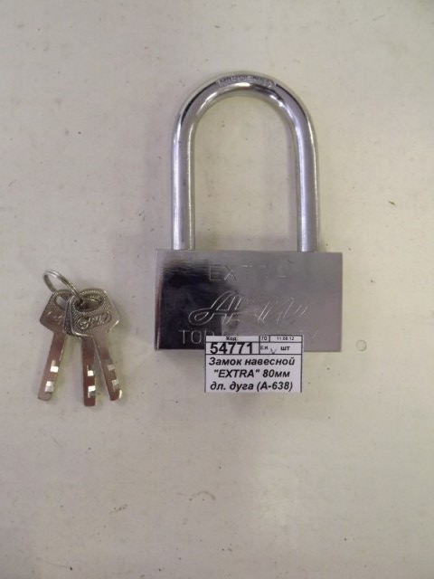 Замок навесной "EXTRA" 80мм длинная дуга (A-638) (006259) Ж