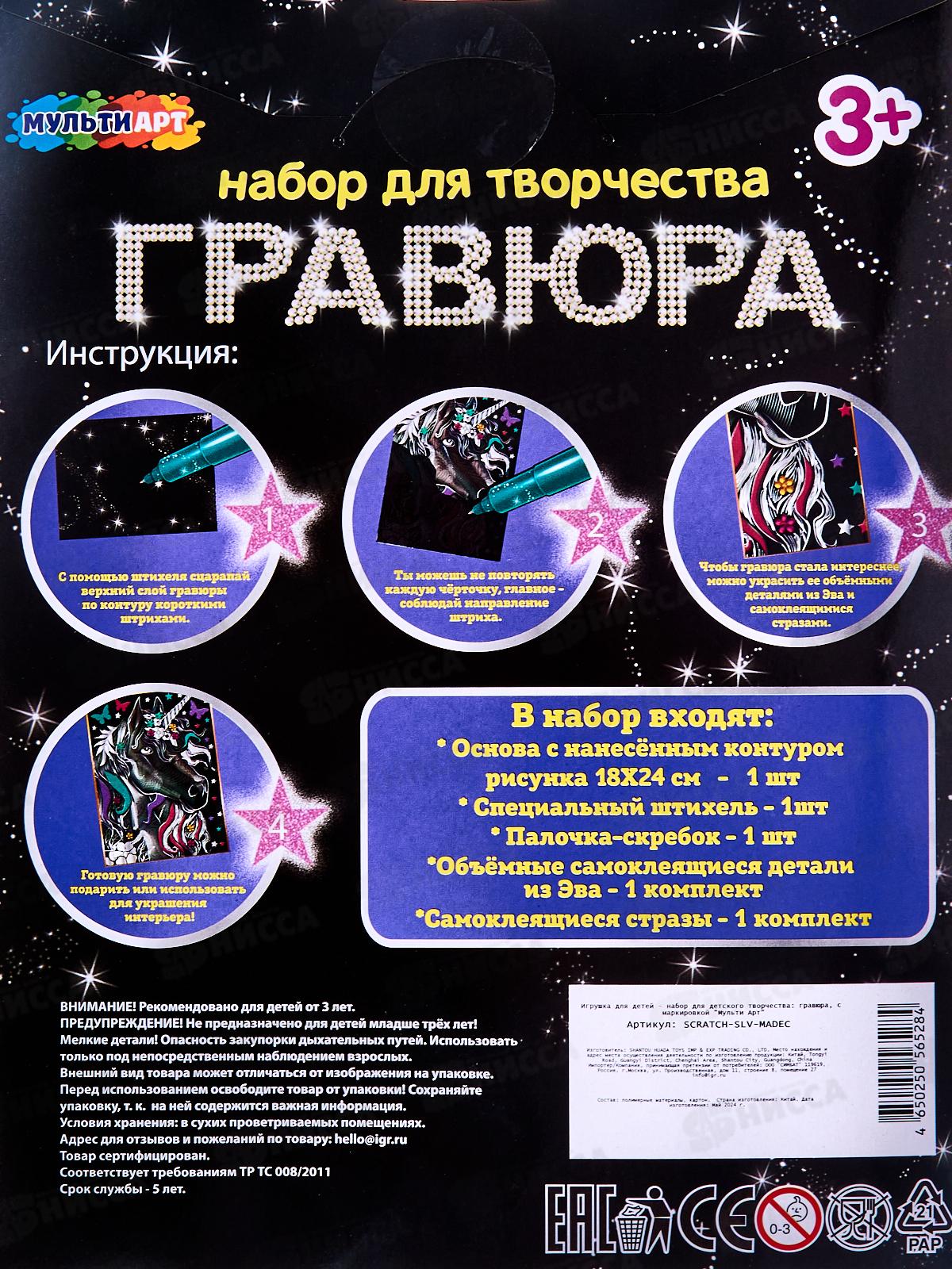 Гравюра 18х24см серебряная Единорог, SCRATCH-SLV-MADEC, 382011