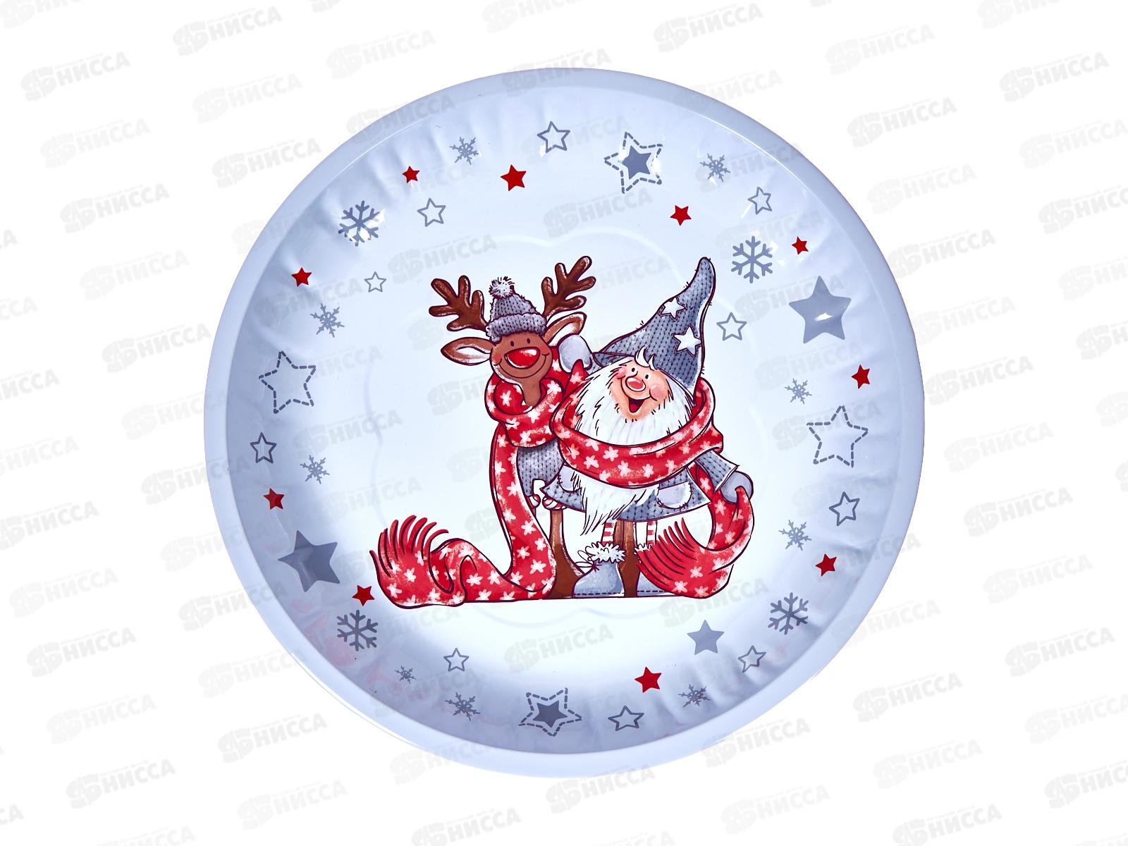 Поднос жестяной Весёлый гном с оленем, d257х30мм, 271136В АТМ