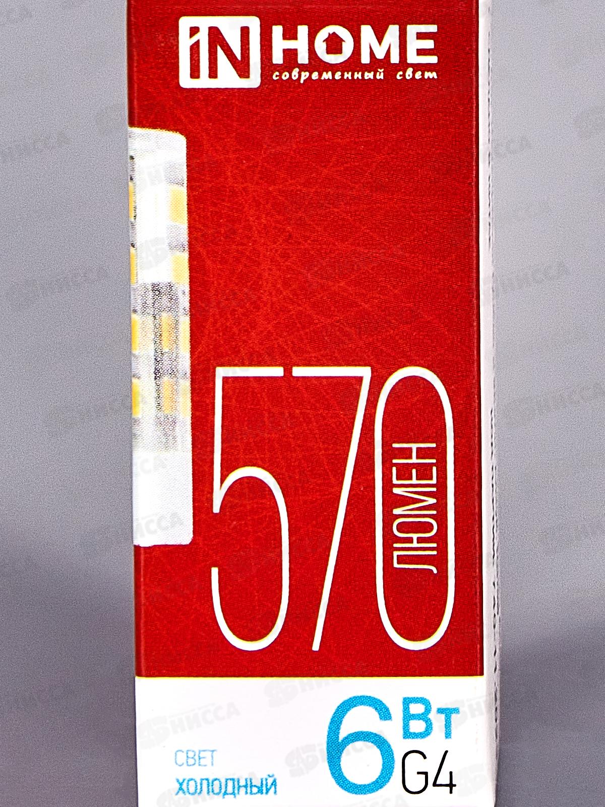Лампа светодиодная IN HOME LED-JCD 6Вт 230В G4 6500К 570Лм *20/1000