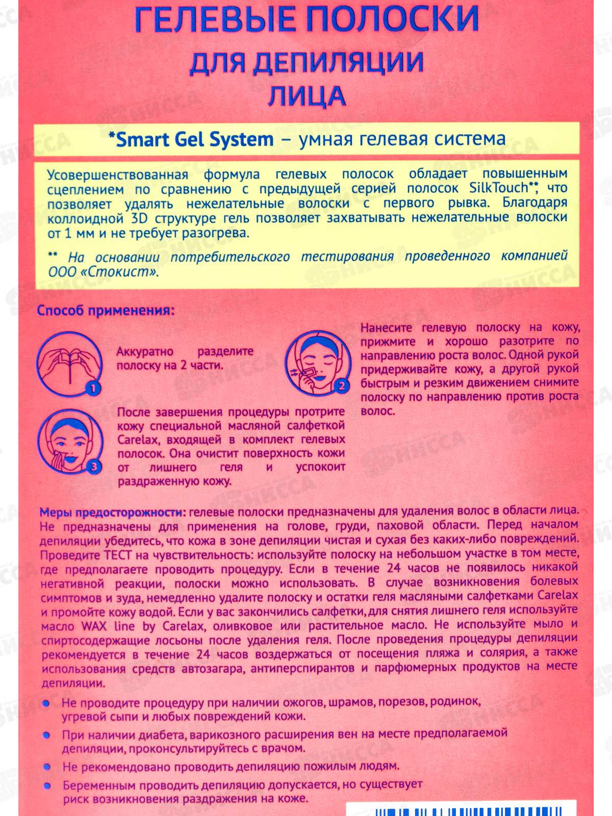 CarelaxSilk Touch восковые полоски CEL-WAX лицо 20шт