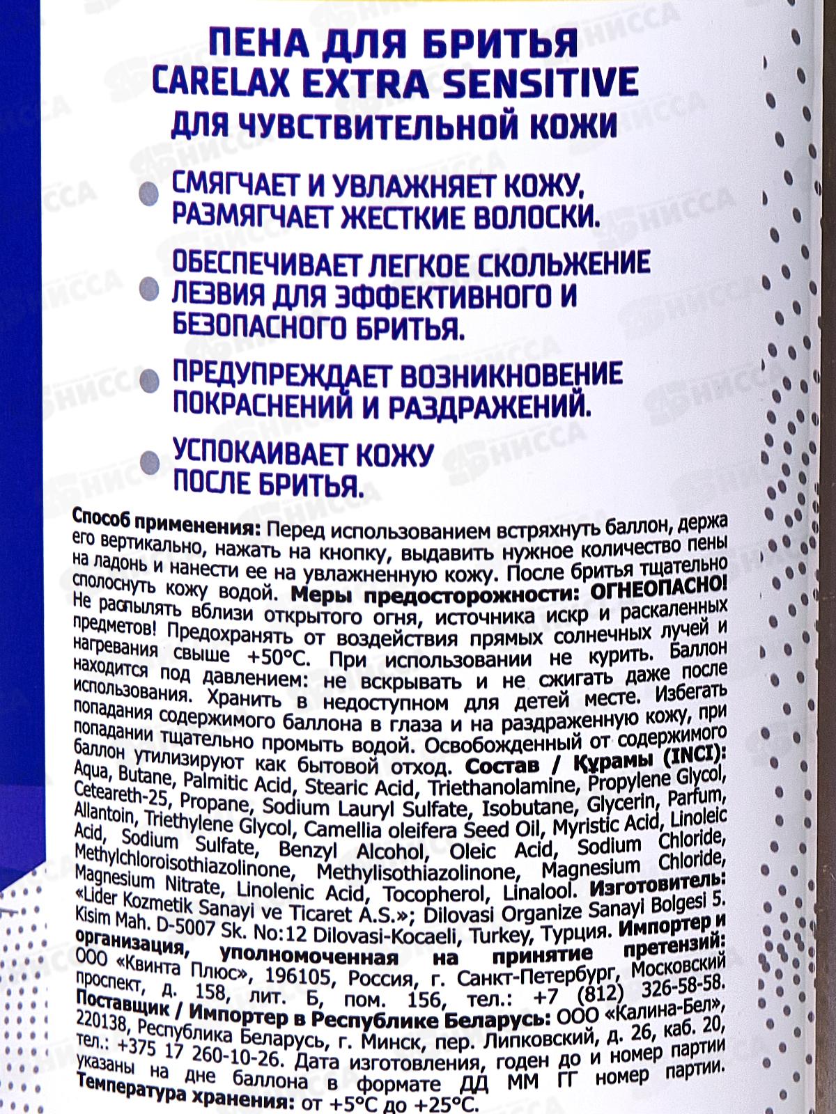 Carelax Пена для бритья для Чувствительной кожи 400мл *12/24