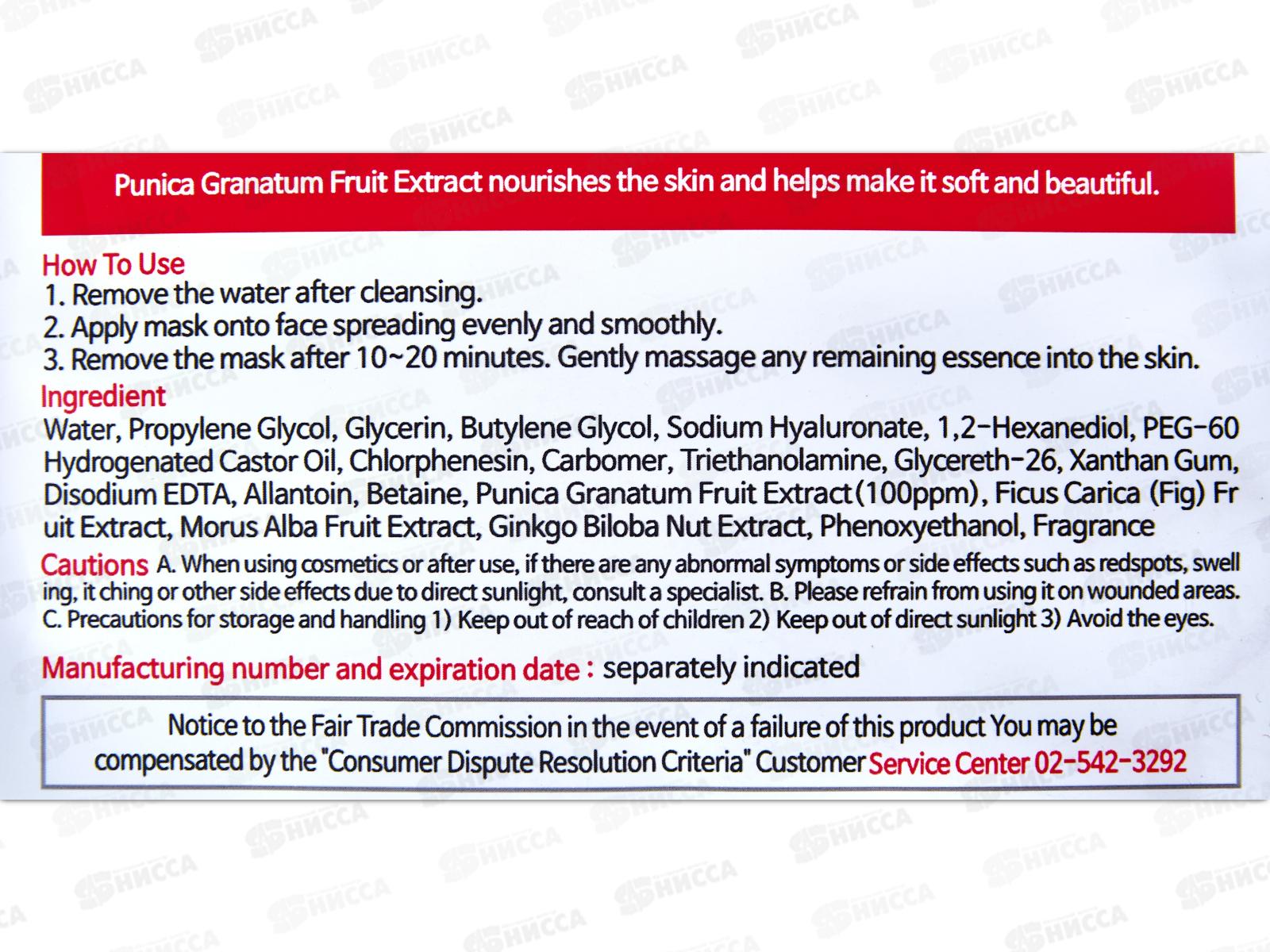 Состав: вода, Пропиленгликоль, Глицерин, Бутиленгликоль, Гиалуронат натрия, 1,2-гександиол, ПЭГ-60 гидрогенизированное касторовое масло, Хлорфенезин, Карбомер, Триэтаноламин, Глицерет-26, Ксантановая камедь, Динатриевая ЭДТА, Аллантоин, Бетаин, Экстракт плодов граната (100 частей на миллион), Экстракт плодов инжира (Ficus Carica), Экстракт плодов шелковицы белой, Экстракт орехов гинкго билоба, Феноксиэтанол, отдушка.