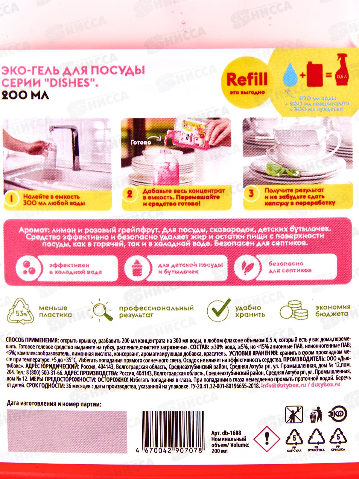 Dutybox Эко-гель для посуды концентрат Лимон и розовый грейпфрут 200мл,1608